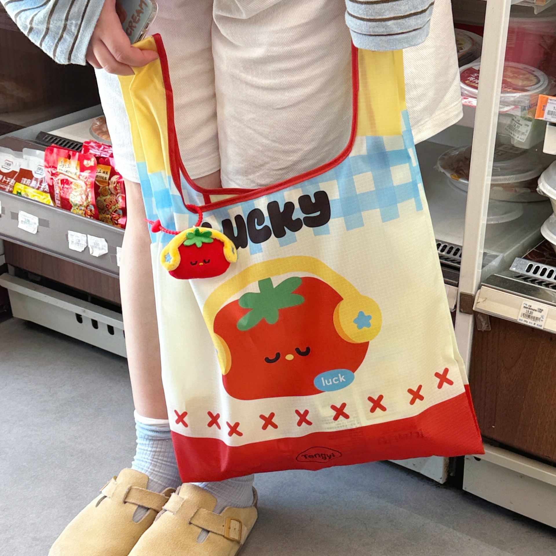 腾亿原创卡通苹果购物袋可收纳折叠环保袋大容量超市购物袋手提袋
