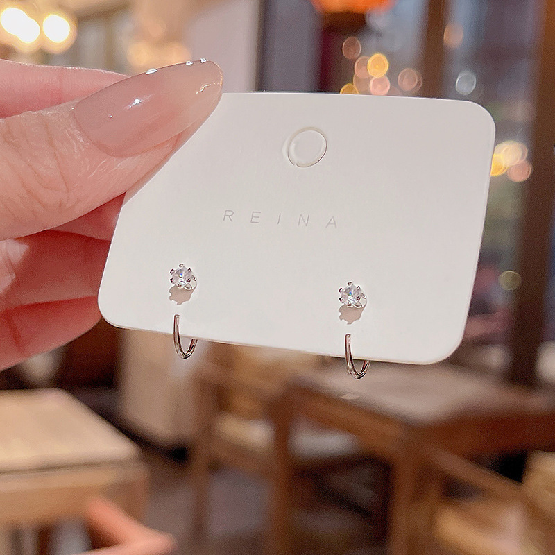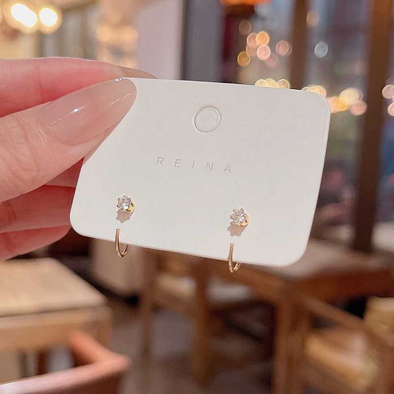 韩国新款简约精致锆石耳勾耳环女日常百搭睡觉不用摘耳钉耳饰批发
