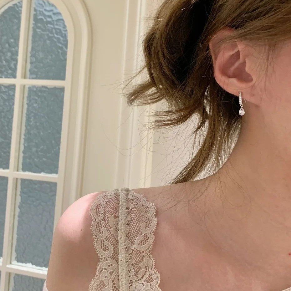 韩系水滴锆石耳环女ins轻奢设计感通勤小巧耳钩气质耳饰新款批发