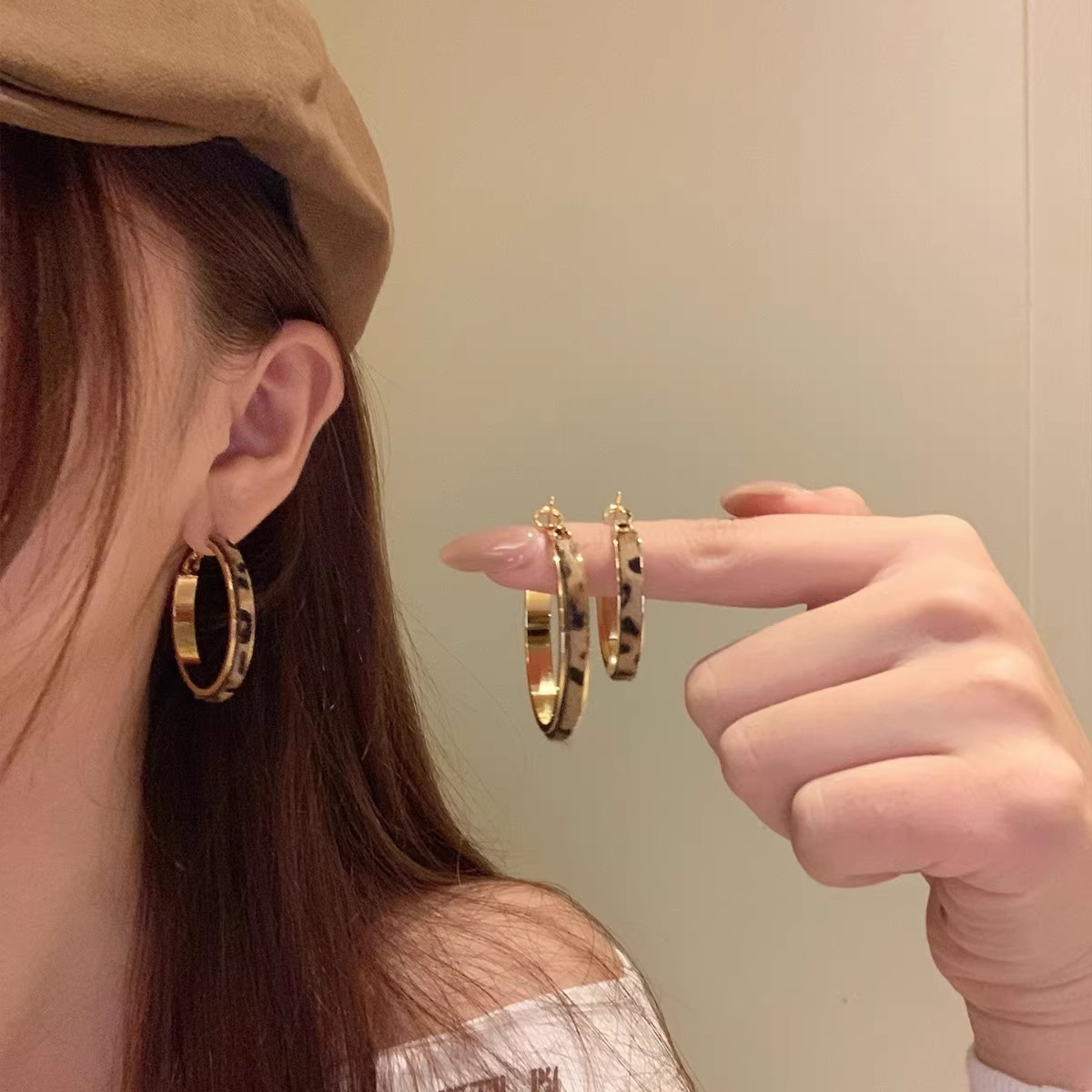 复古夸张毒液豹纹圆圈耳环轻奢气质高级感耳夹辣妹嘻哈显脸小耳饰