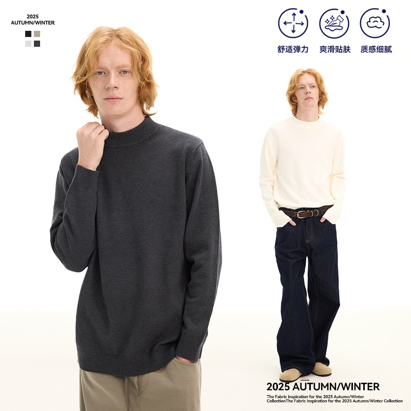 UNF 老钱风cleanfit舒适简约软糯针织毛衣半高领保暖打底秋冬男女