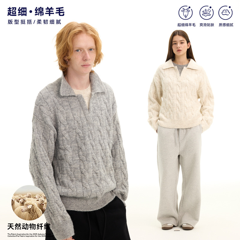 老钱风绵羊毛cleanfit舒适软糯针织毛衣休闲翻领POLO衫男女秋冬