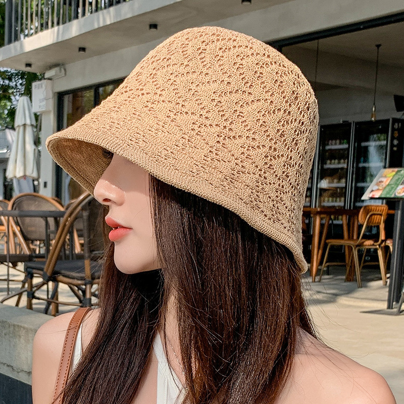 夏のファッションは透かし彫りのバケツの帽子を編みます。