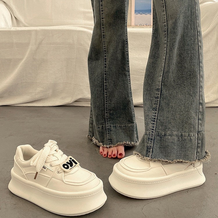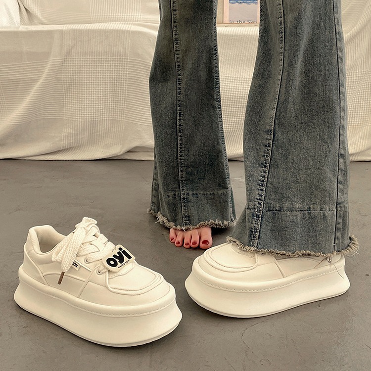 見栄えの良いトレンディな厚底身長アップラージトゥシューズ、女性用、2025年春の新作韓国版、多用途カジュアルホワイトシューズ、トレンディ