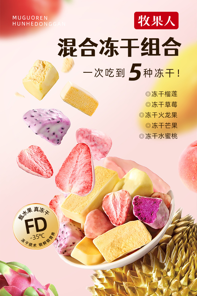 牧果人【水果冻干】150克草莓榴莲芒果冻干零食分享装网红送女友