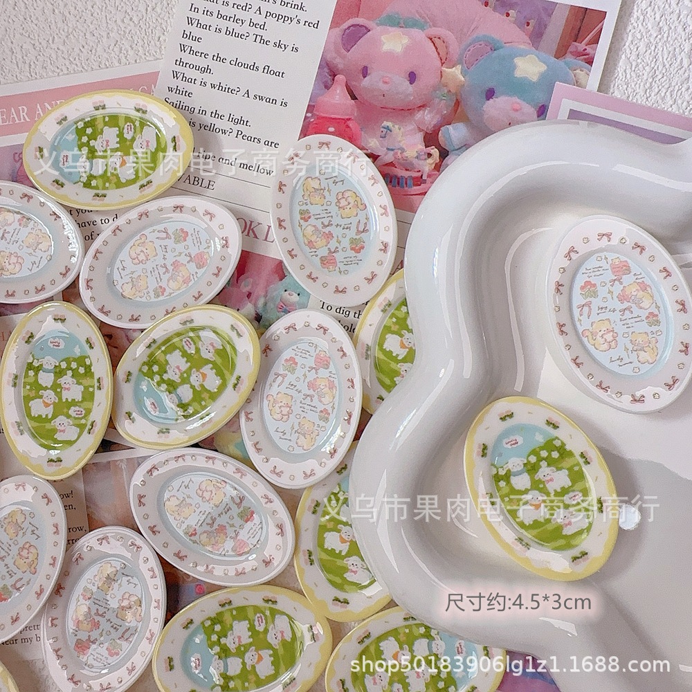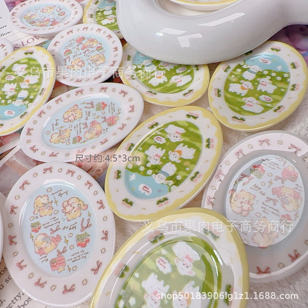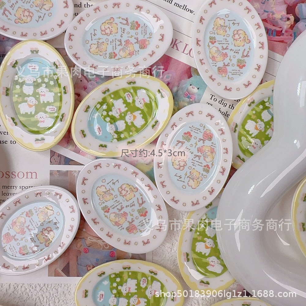可爱捏捏食玩餐盘仿真盘子小羊椭圆盘小松鼠娃屋diy手工树脂配件