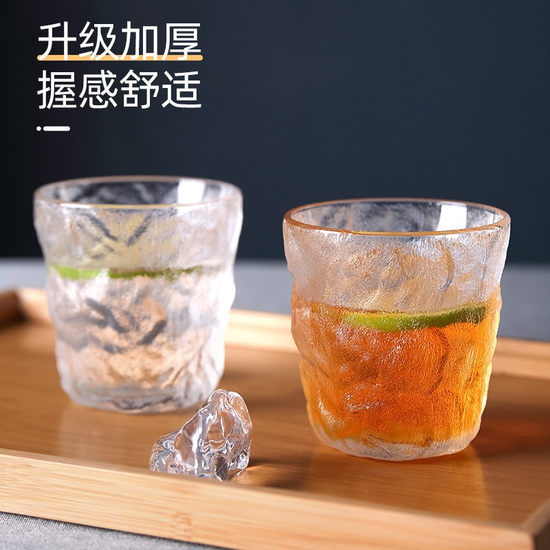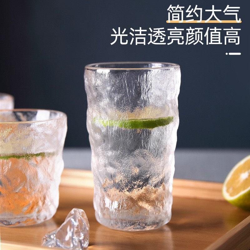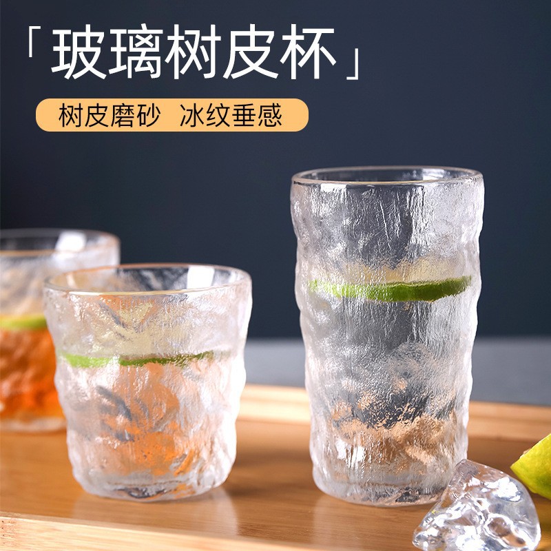 磨砂冰川玻璃杯家用日式简约水杯创意树皮纹水杯果汁杯冷饮杯批发