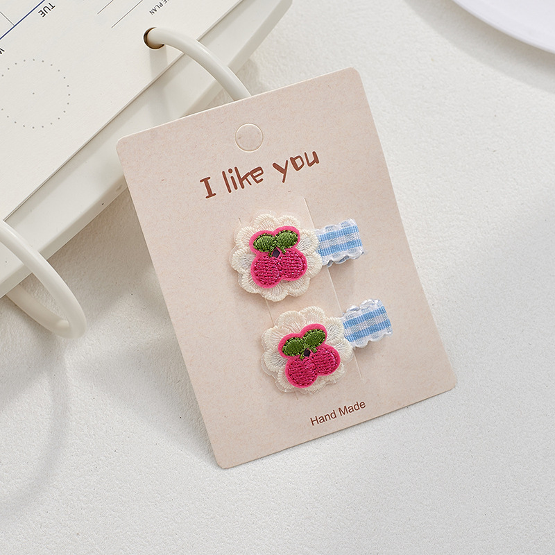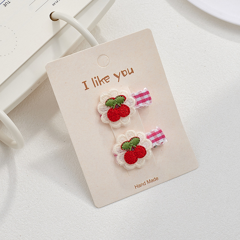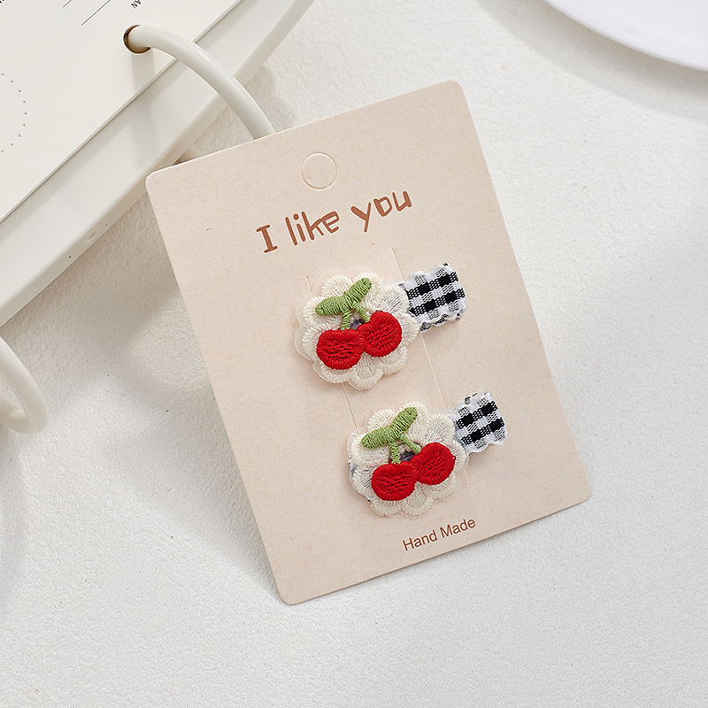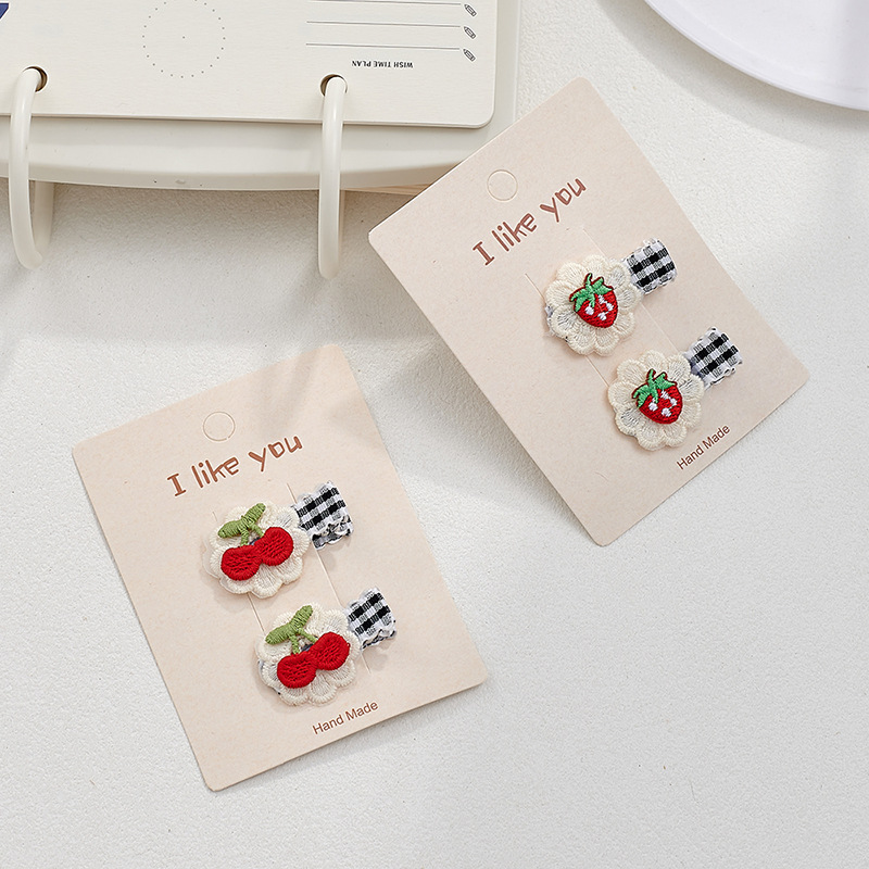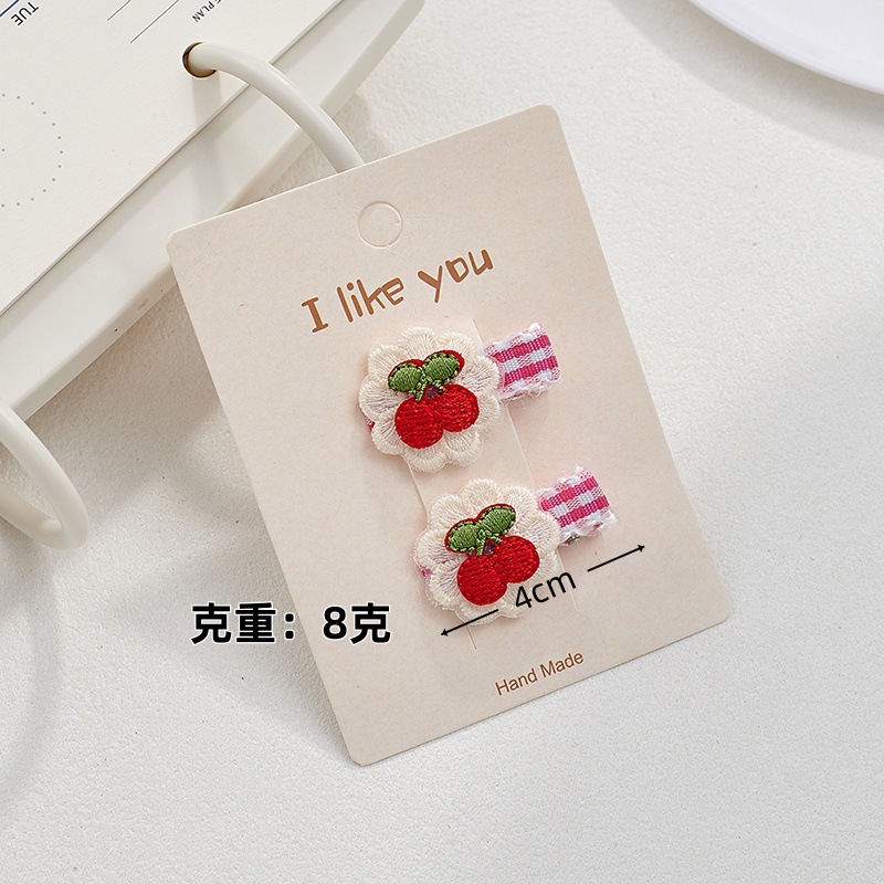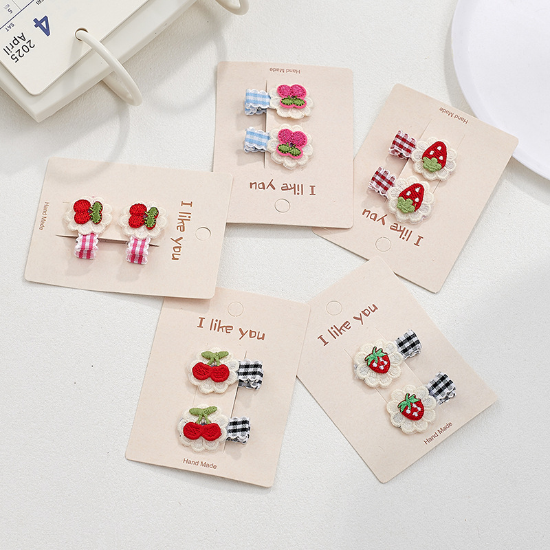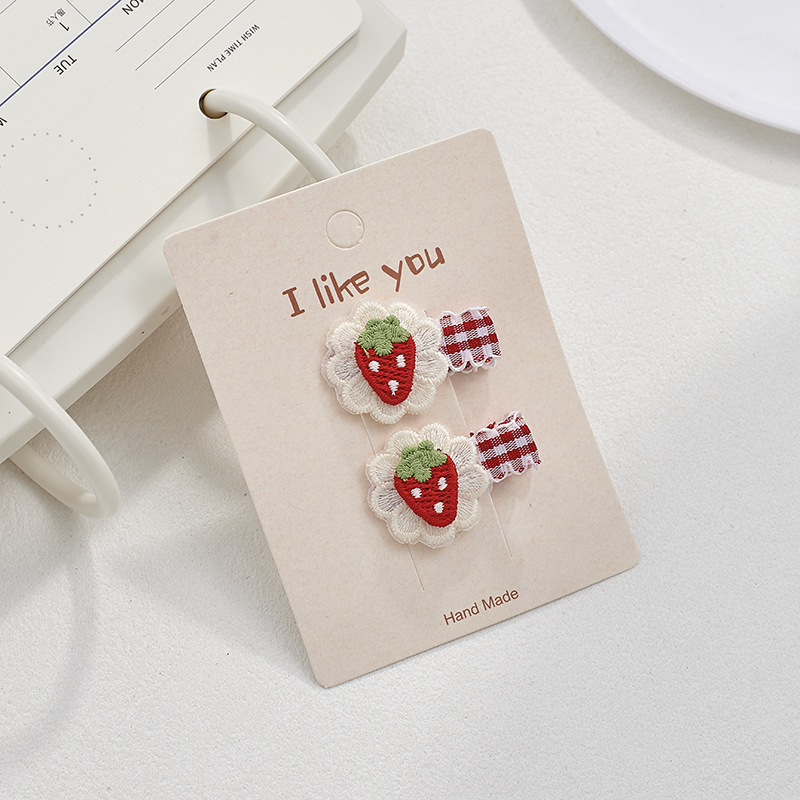 甜美儿童刺绣水果草莓格子发夹小女孩侧边刘海夹不伤发全包夹发卡