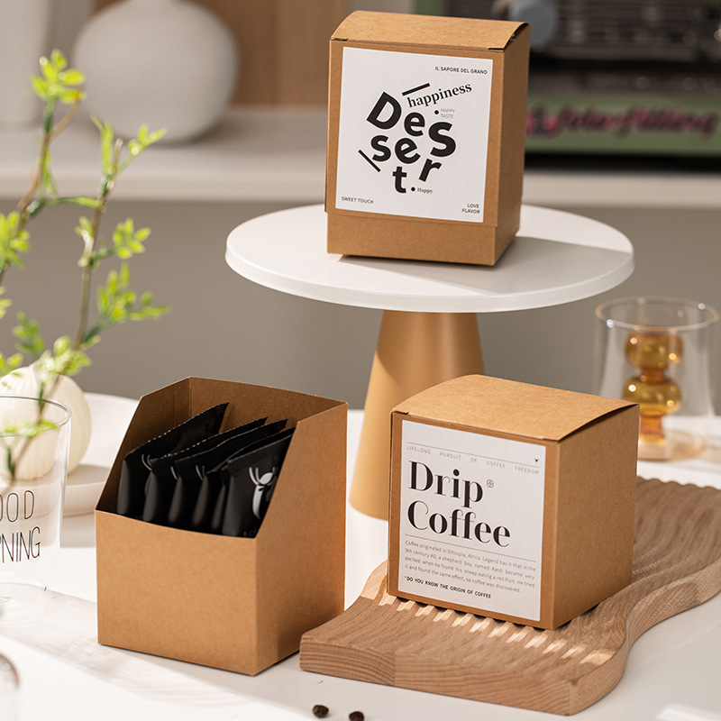 2025 吊り耳コーヒー手作りクラフト紙箱アメリカンキャンディーチョコレートカジュアルスナック小さなギフトボックス企業在庫