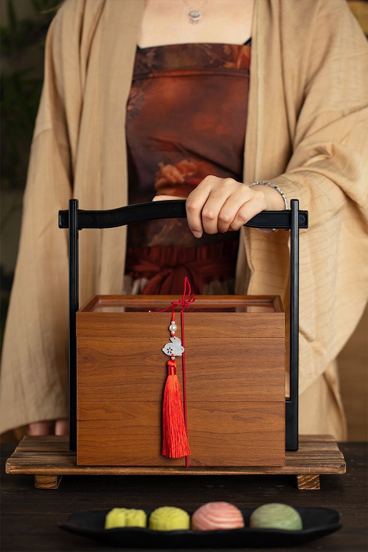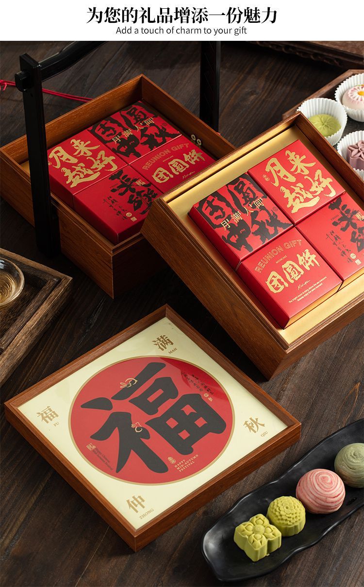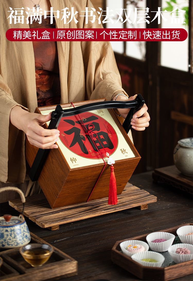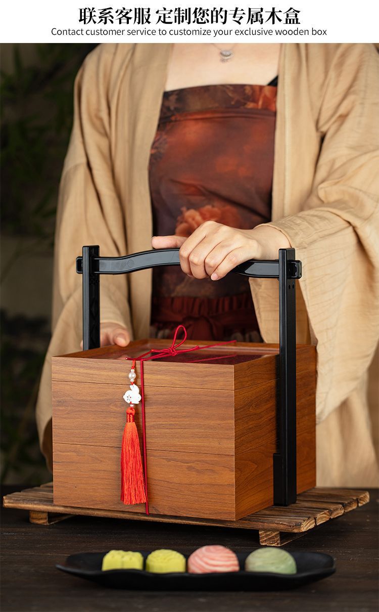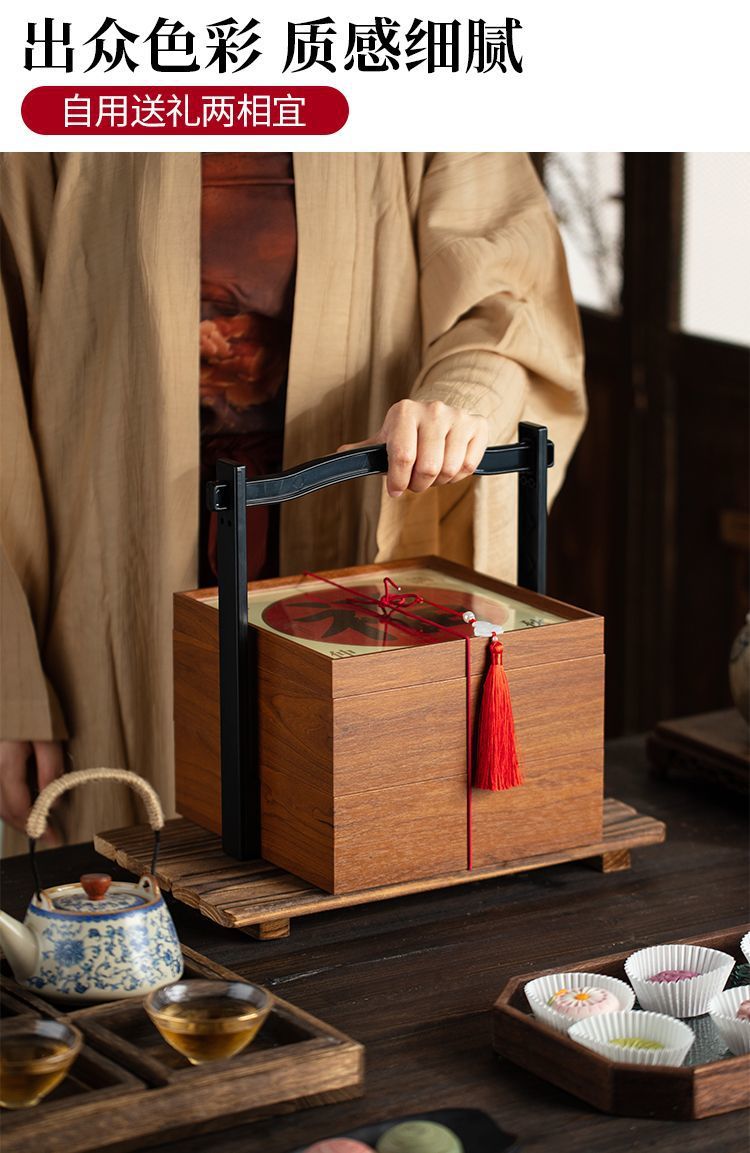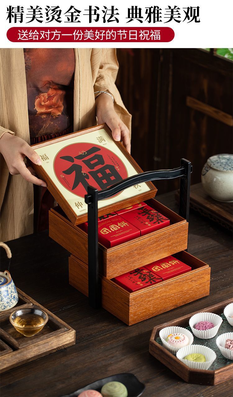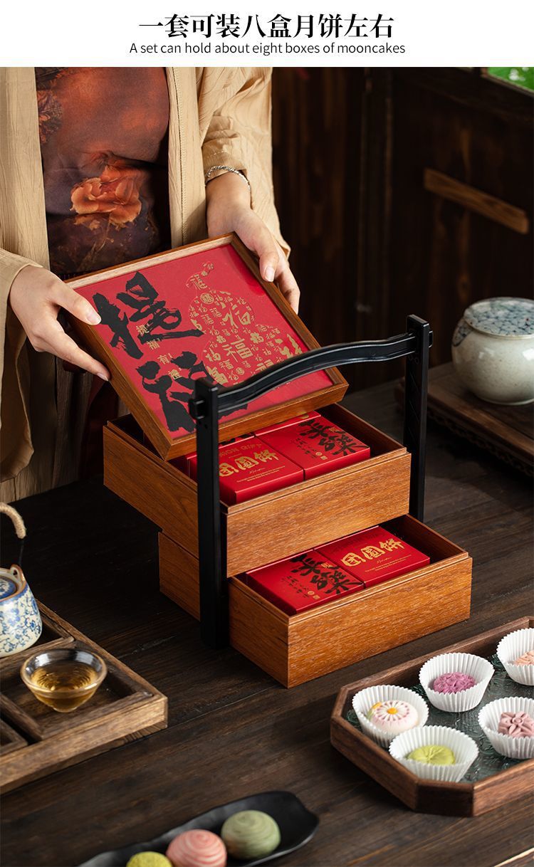 二層中秋月餅包装箱 木製8個入り無垢材バスケット 氷皮ギフト 国風ギフトボックス 高級2024