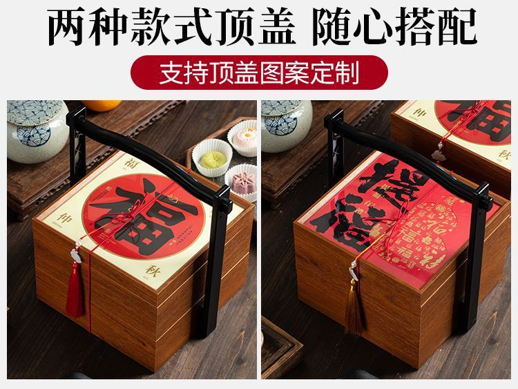 中国のポータブル二層木製月餅箱空のギフトボックス家庭用ギフト木箱単層天蓋月餅木箱