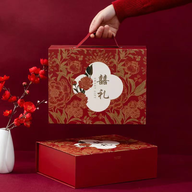 中国風の持ち運び可能な祝賀用ギフト包装箱、折り畳み不要の結婚式のキャンディボックス、高級感のあるギフトボックス