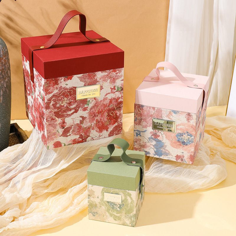 手提げシルクタオル角箱結婚花嫁開業美容院店慶伴手礼箱小清新プレゼント包装箱