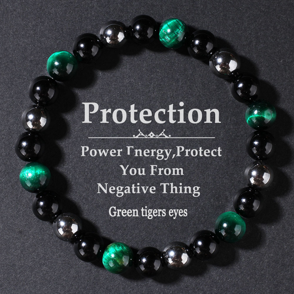 欧米風天然石ブレスレット 模造グリーンタイガーアイ ブラック胆石ビーズブレスレット 卸売販売