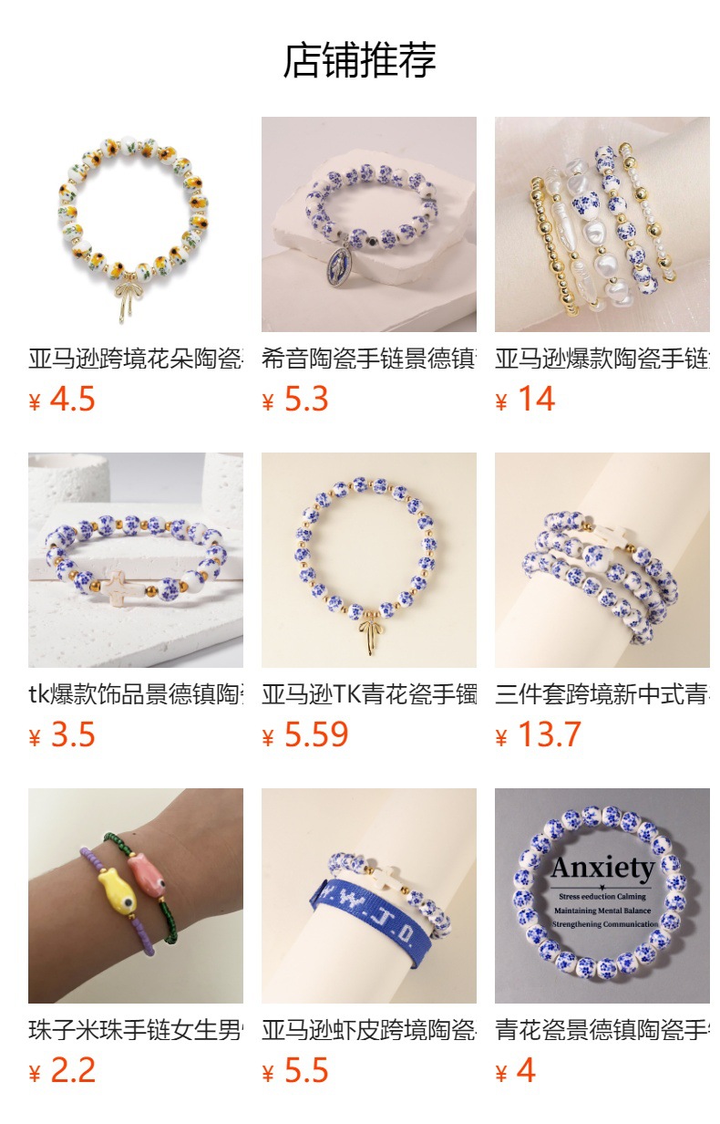 亚马逊热卖青花瓷串珠蝴蝶结女士手链花复古手链手工弹力串珠批发
