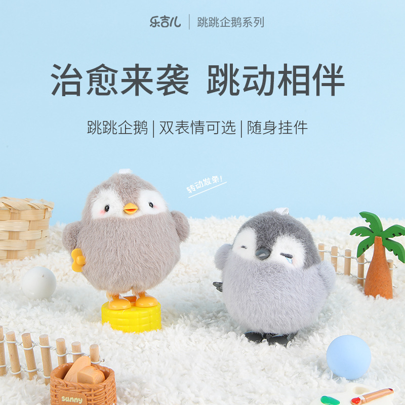 乐吉儿跳跳企鹅发条玩具仿真跳跳小鹅互动毛绒公仔儿童陪伴玩偶