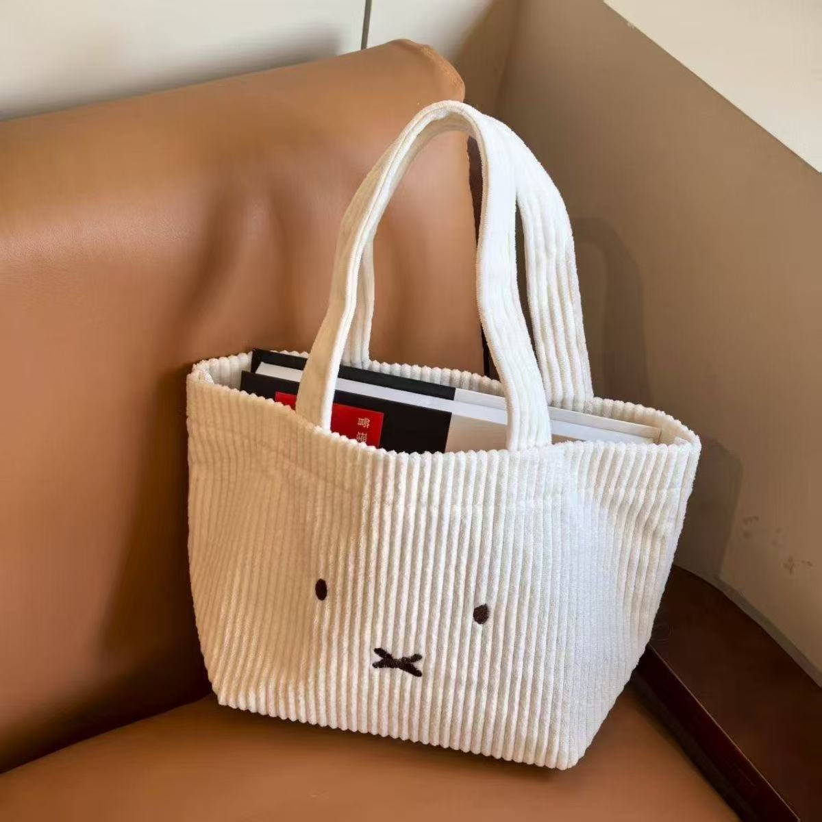 米菲兔灯芯绒刺绣手提包通勤百搭高颜值便携式大容量新款学生可爱