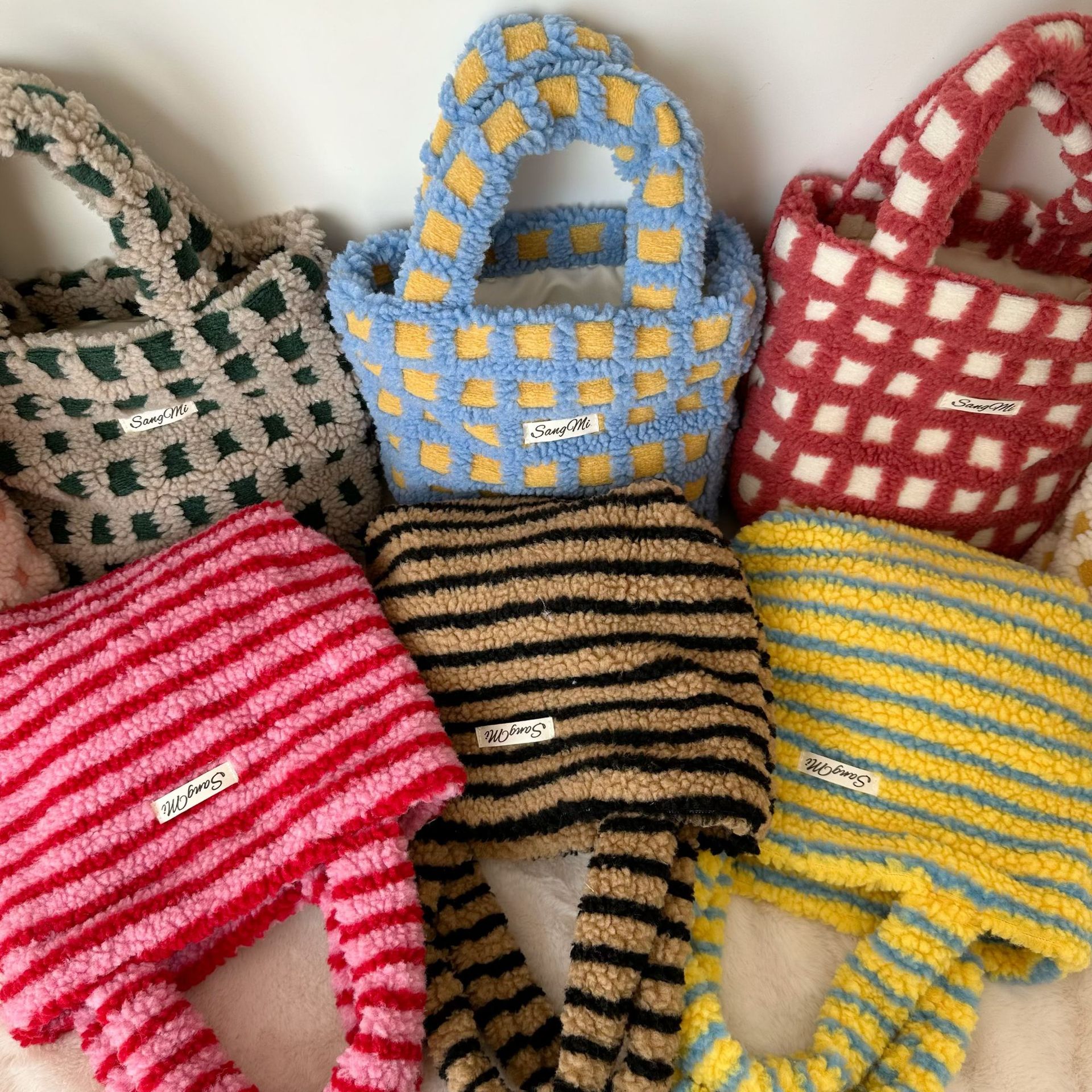 518682秋冬新作羊小毛ワッフルかわいい手提げトートバッグ女性バッグ携帯大容量ハンドバッグ