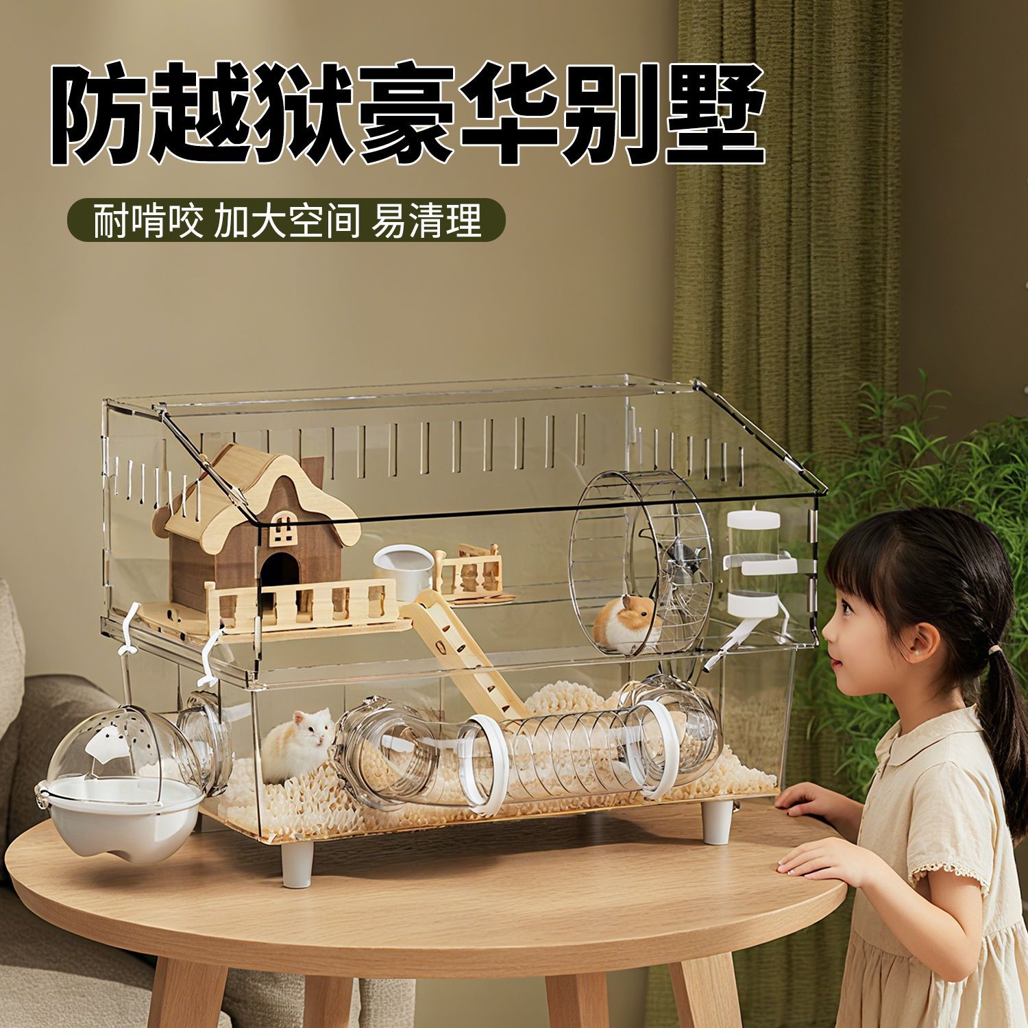 透明仓鼠笼子豪华别墅金丝熊笼子专用亚克力宠物饲养箱大空间用品