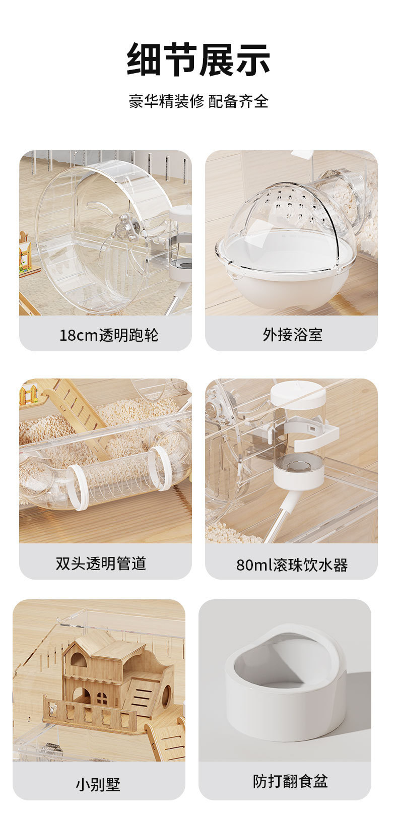 透明仓鼠笼子豪华别墅金丝熊笼子超大空间亚克力仓鼠笼子宠物用品