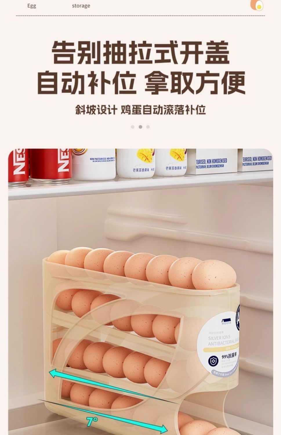 滑梯滚动鸡蛋收纳盒家用冰箱侧门厨房取蛋神器新款自动滚蛋