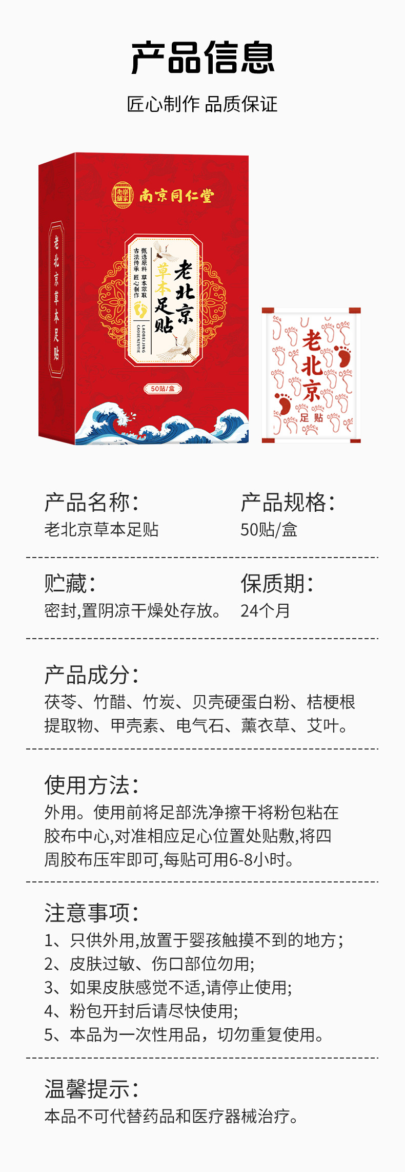 产品名称 同仁堂老北京足贴