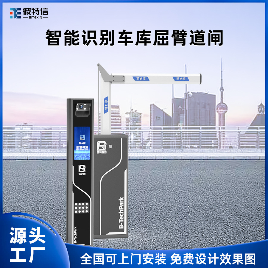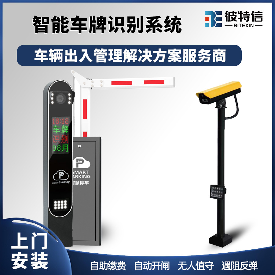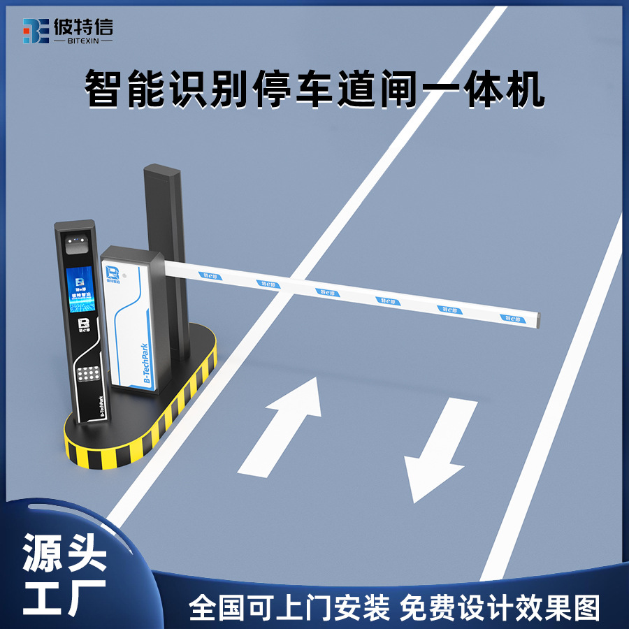 彼の特信団地の駐車場のナンバープレートの識別システムは自動的に竿を上げて料金を徴収します。