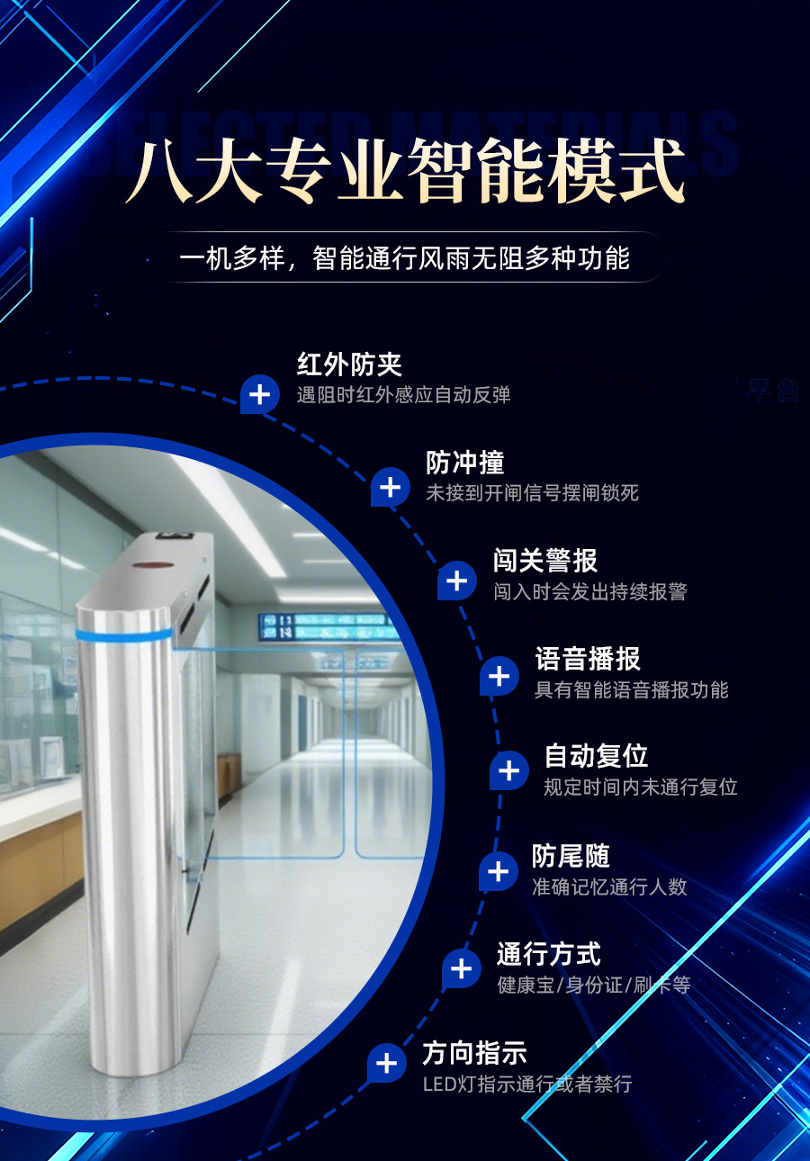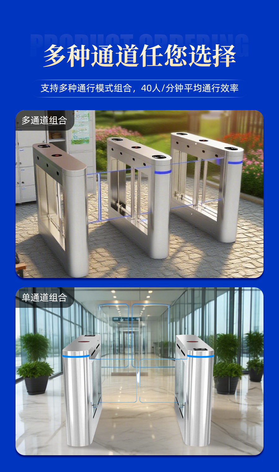 豪华速通门写字楼人行考勤门禁系统智能人脸识别闸机红外防夹摆闸