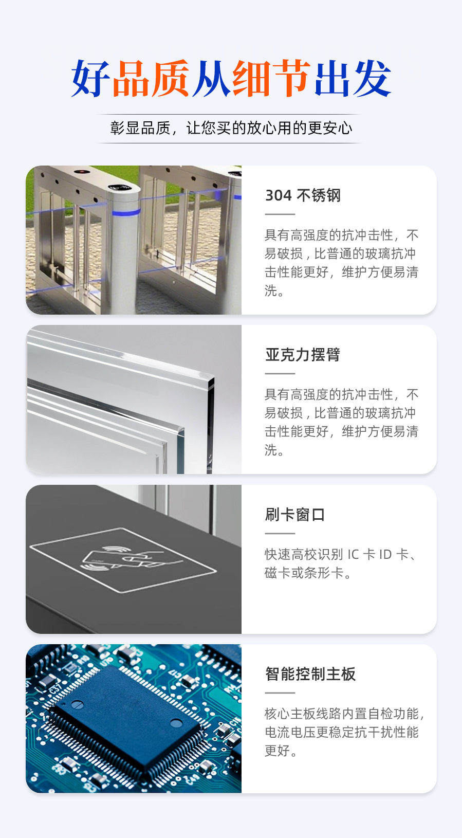 票务翼闸人行通道闸学校园区出入口人脸识别门禁摆闸智能闸机