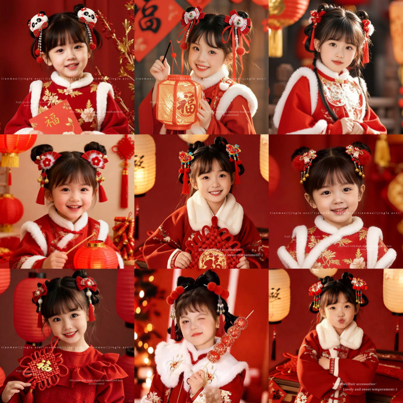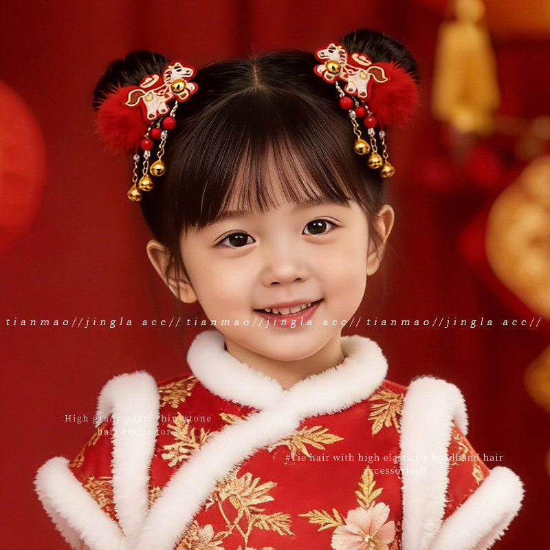 新年古风儿童发夹头饰可爱汉服醒狮发饰女2026新款蝴蝶结宝宝发卡