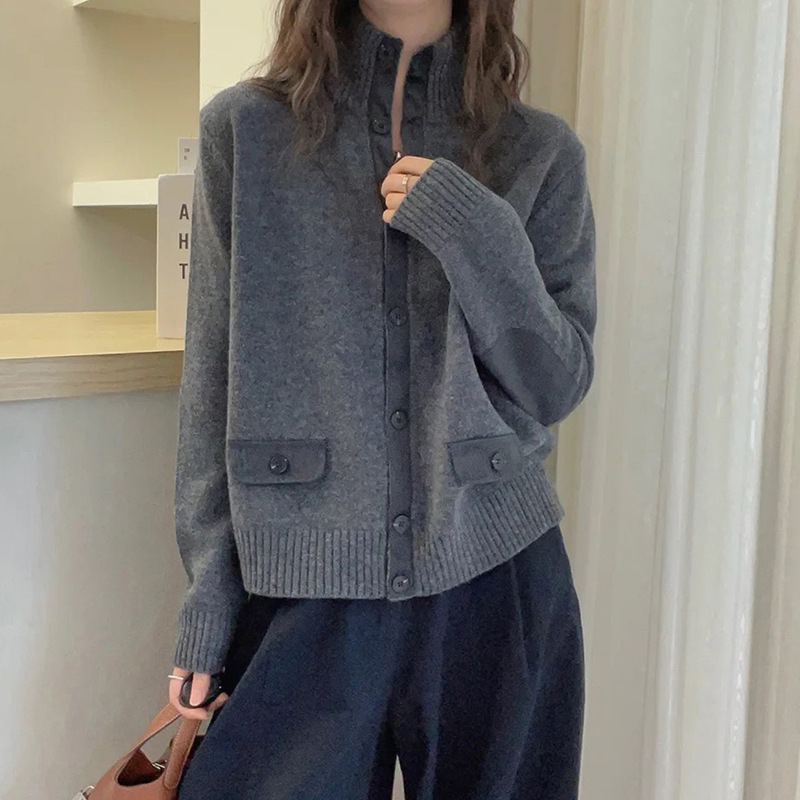 ファッションは新型のゆったりした立襟のセーターの女性の短いスタイルのウールのセーターに合わせて、カジュアルな長袖のカーディガンのコートを厚くします。
