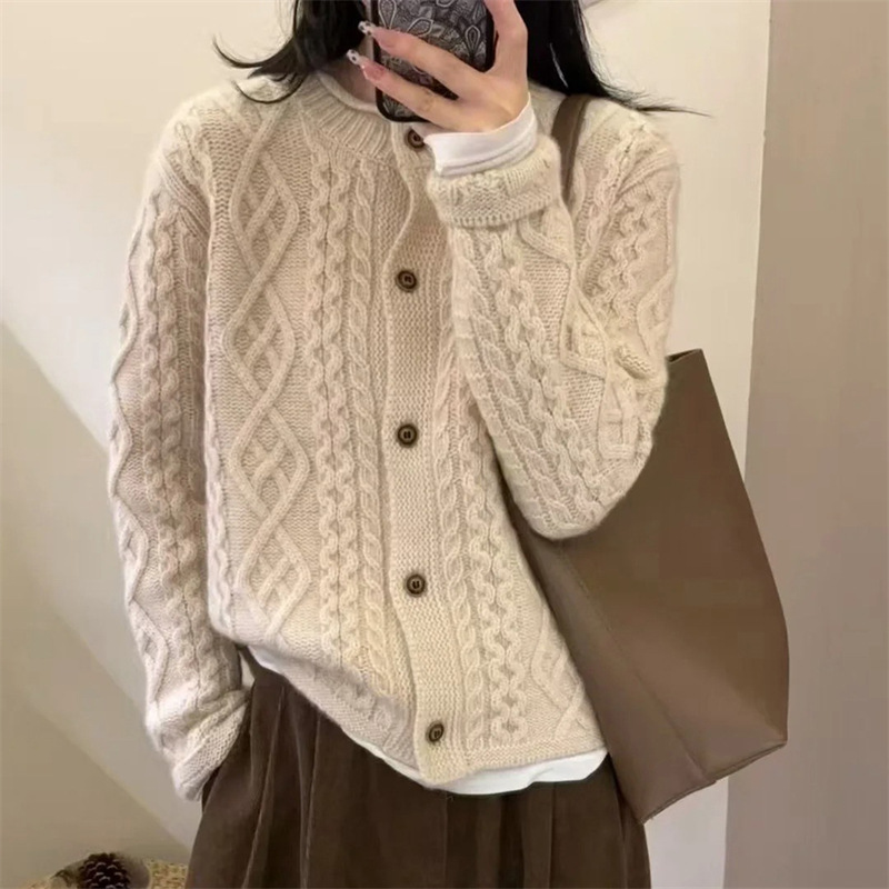 PLOL领法式复古麻花毛衣女秋冬2025新款宽松外穿慵懒风显瘦羊毛衫