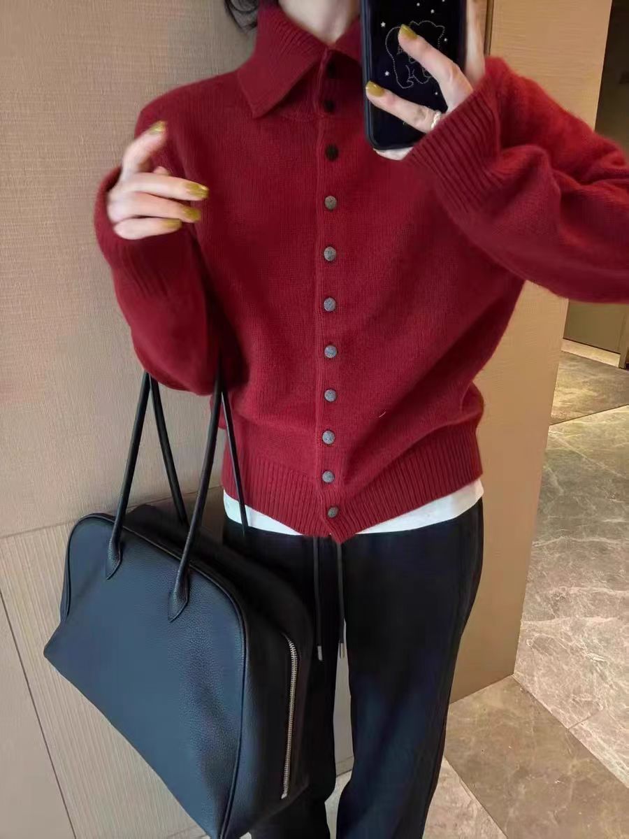 重工菱形羊毛开衫女菱形复古保暖针织衫上衣秋冬款百搭毛衣外套