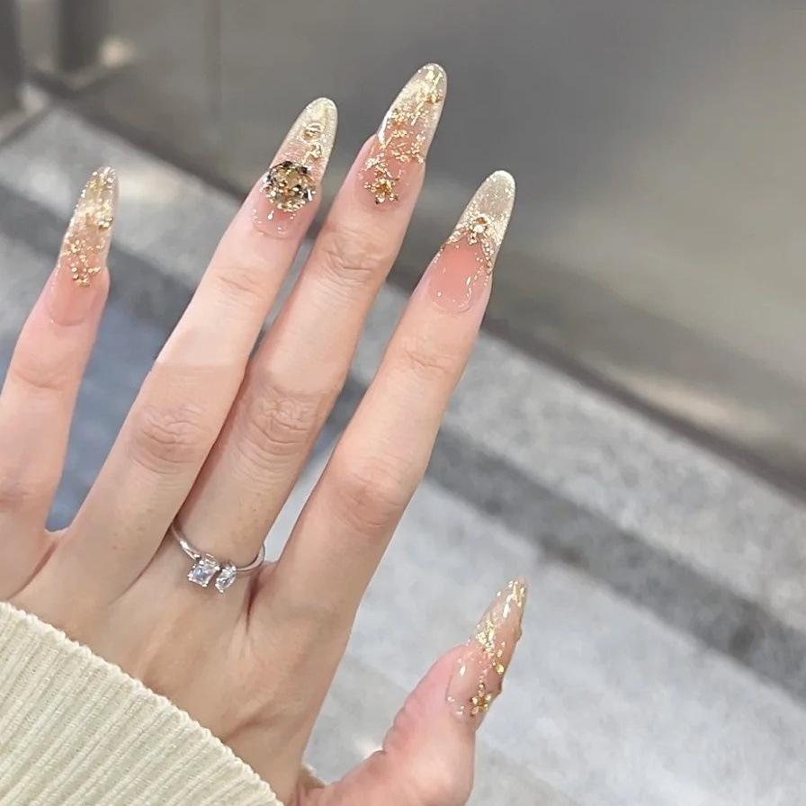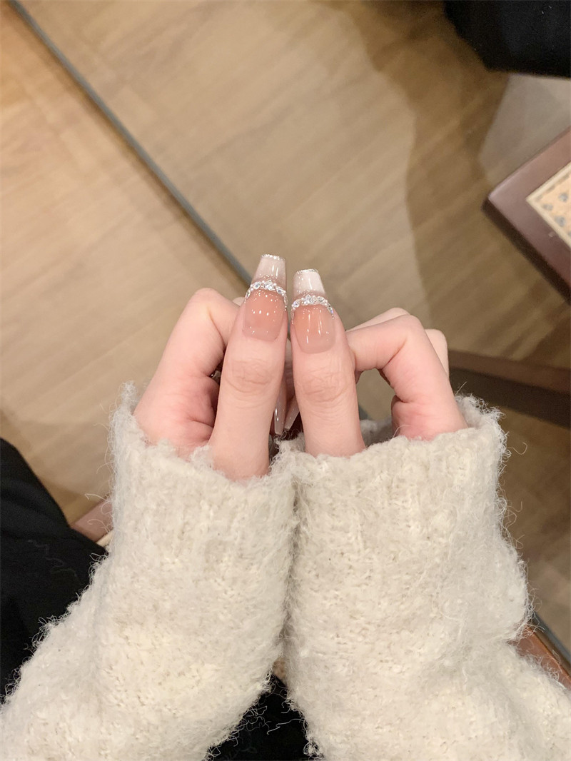 纯手工穿戴甲纯欲氛围感裸色碎钻爆闪婚礼美甲温柔气质显白美甲贴