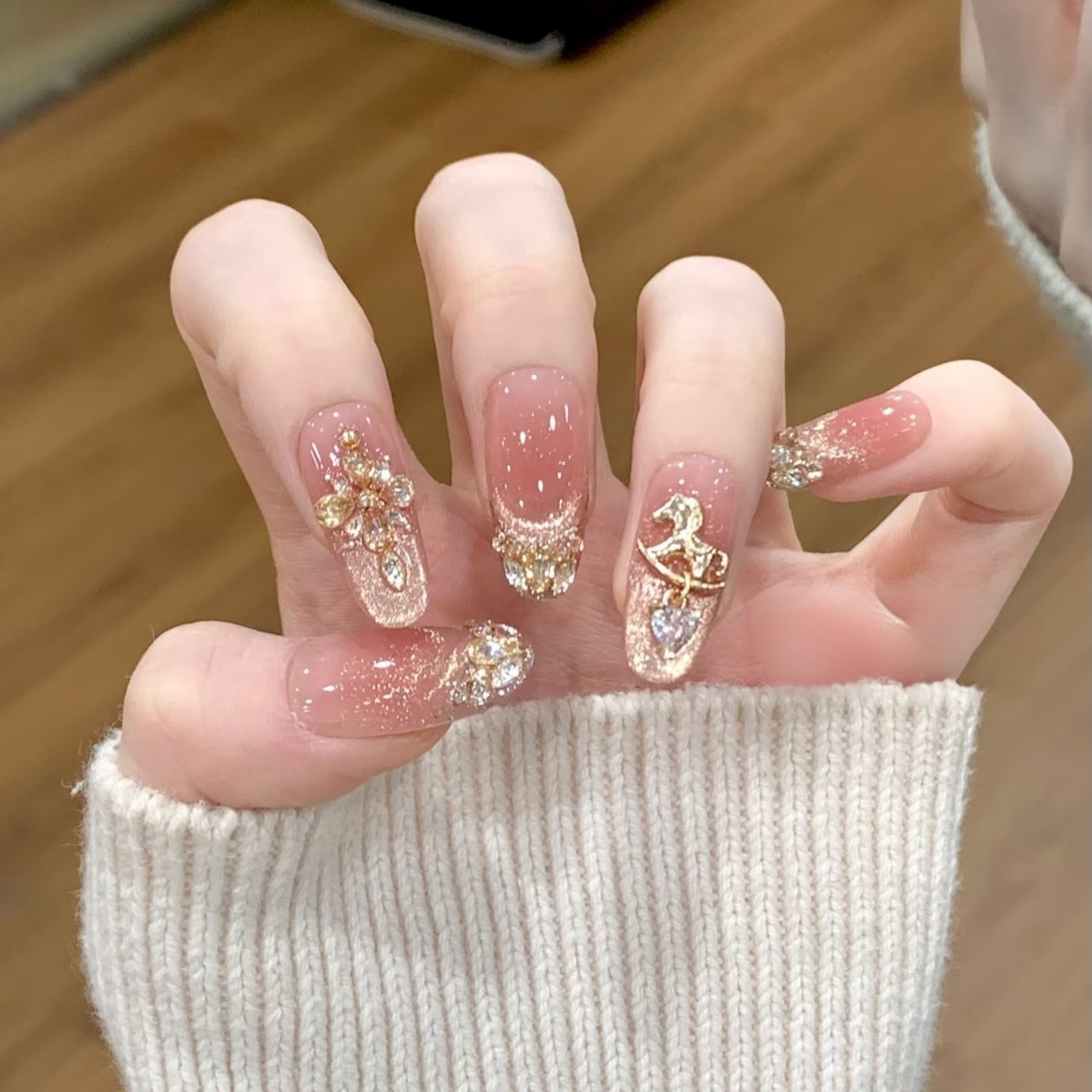 手工穿戴甲新年可爱爆闪锆石开运猫眼金马高级感ins氛围感美甲