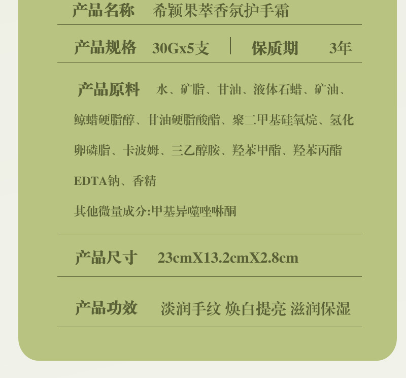 产品规格 护手霜套盒