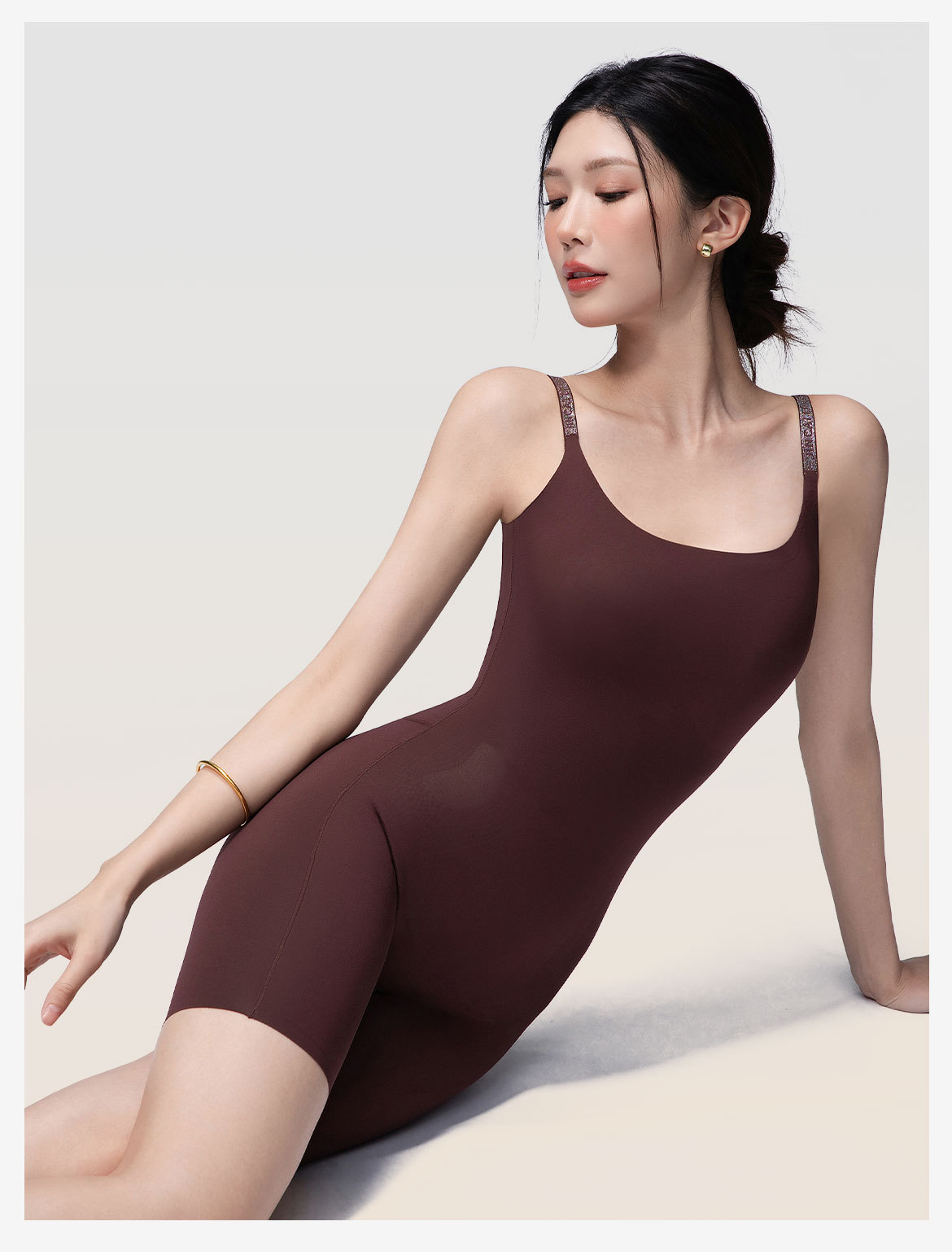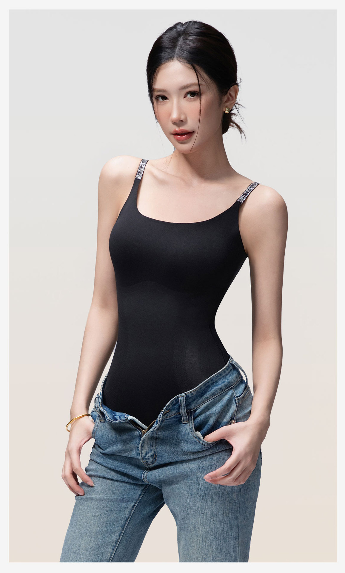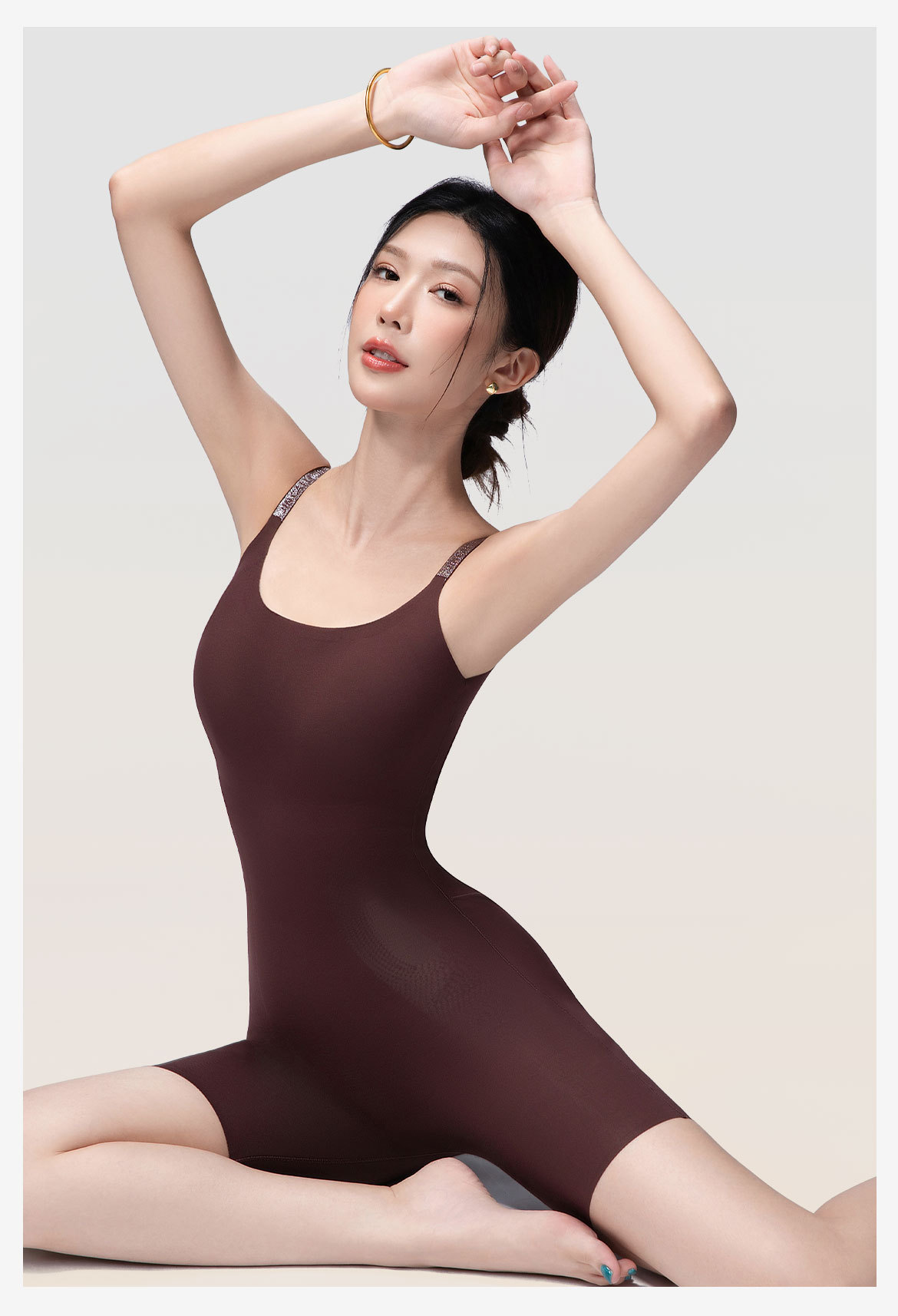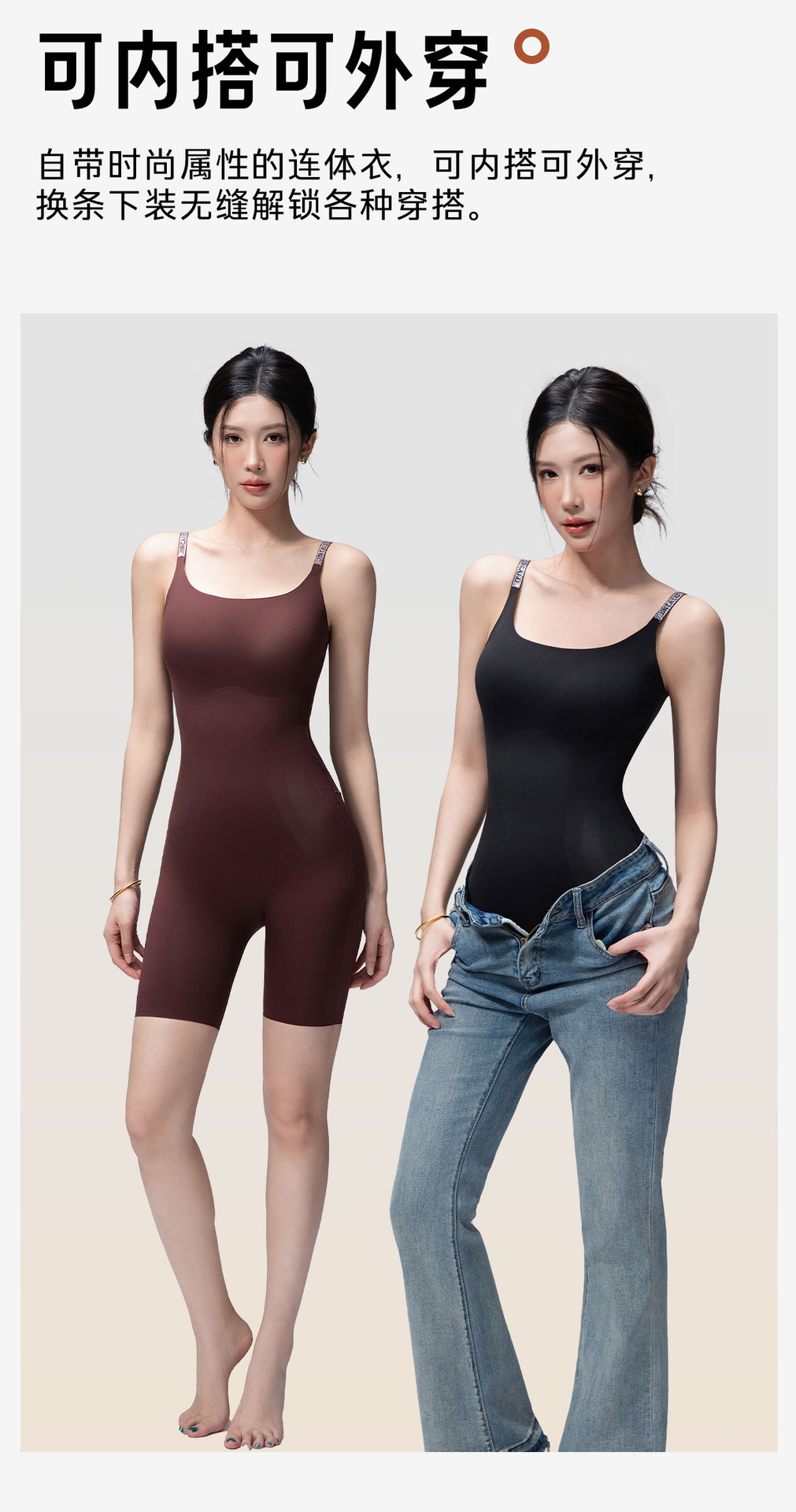 2025新款女士三角连体塑身衣美体塑形收胯美腿免穿文胸带胸垫后脱
