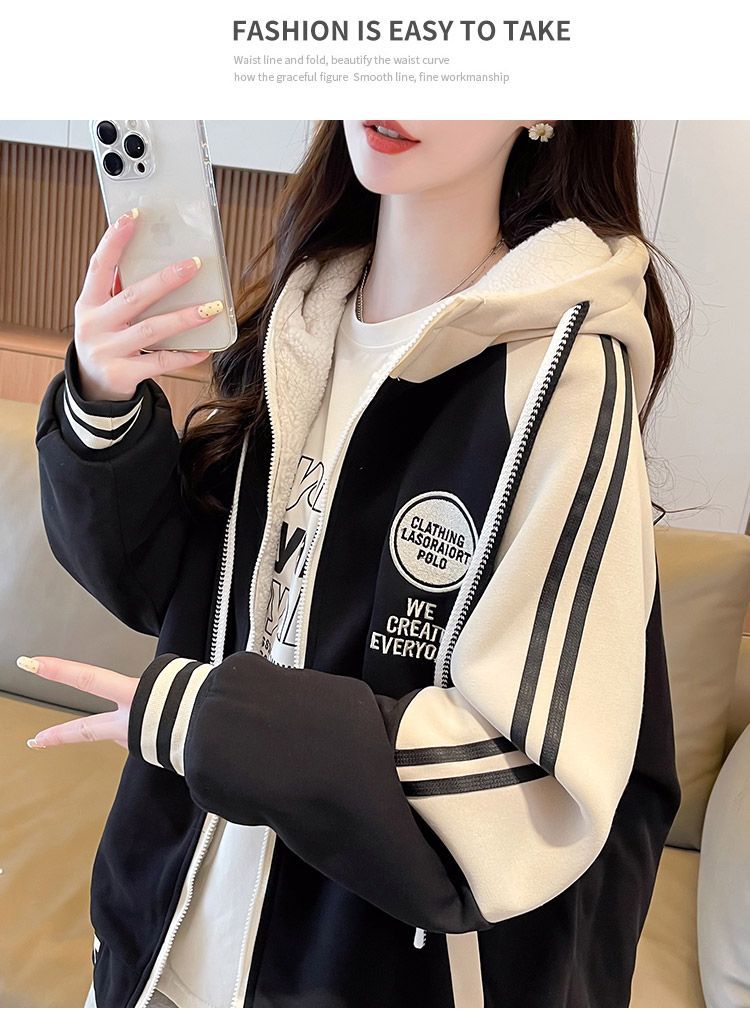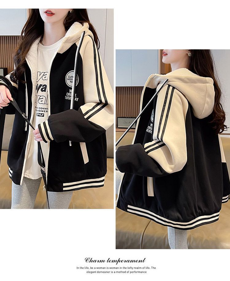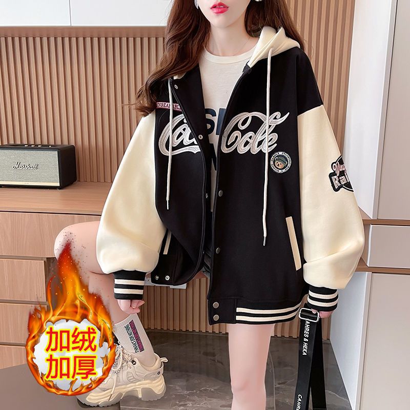 女童秋冬季外套2025新款网红运动儿童棒球服女孩连帽加绒冬装上衣