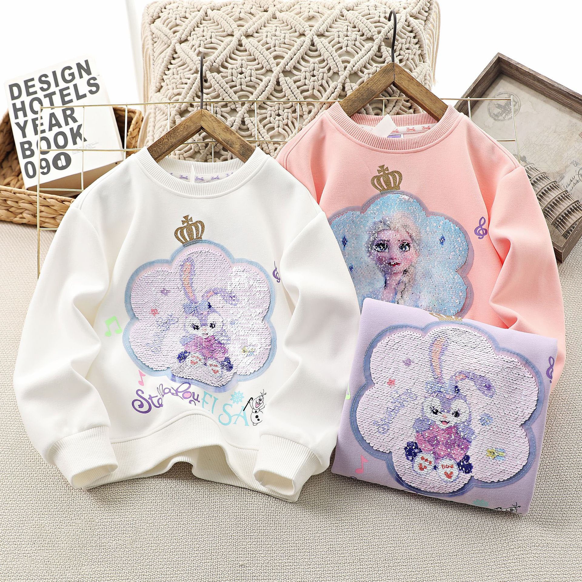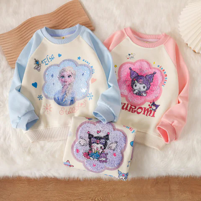 【現物】女児秋冬衛衣亮片衛衣-艾莎姫【有加絨毛】
