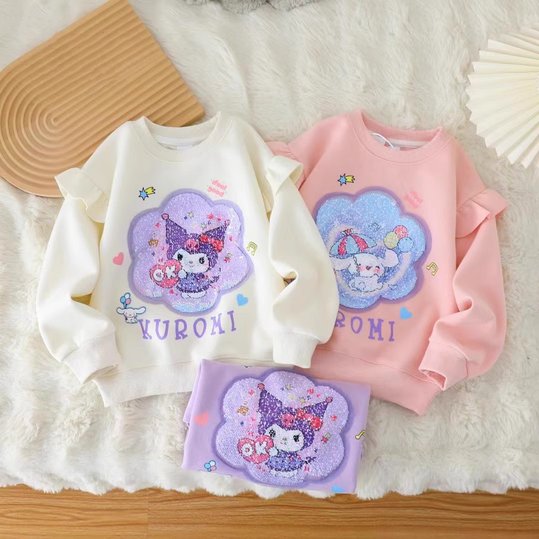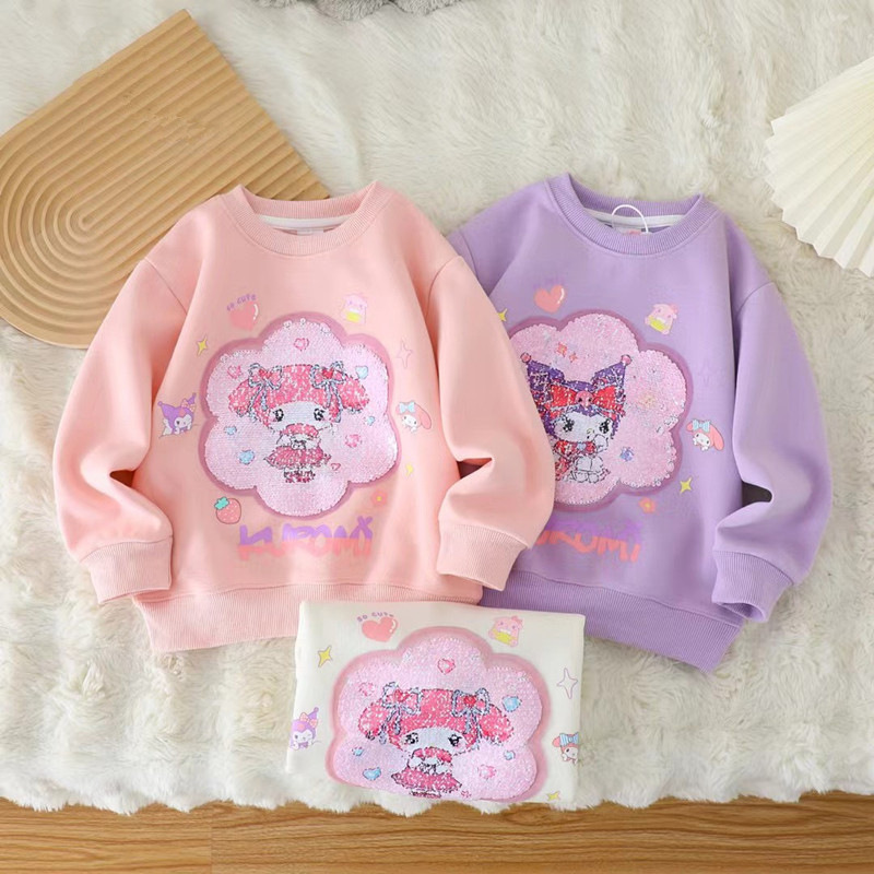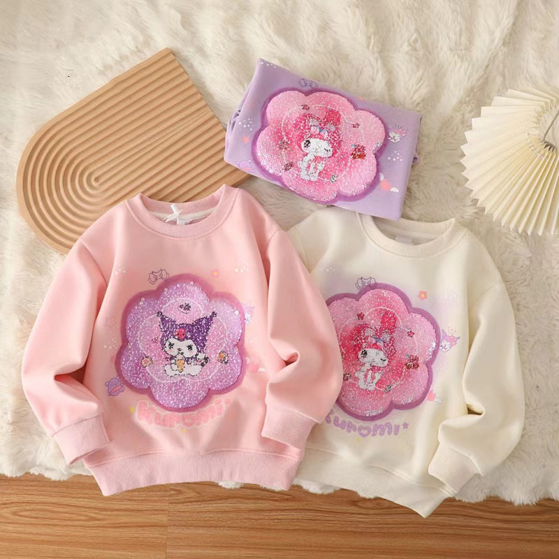 【現品】女の子の秋の子供の美楽ティは、クロミの漫画の変色した丸首の長袖の上着になります。
