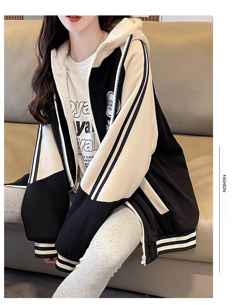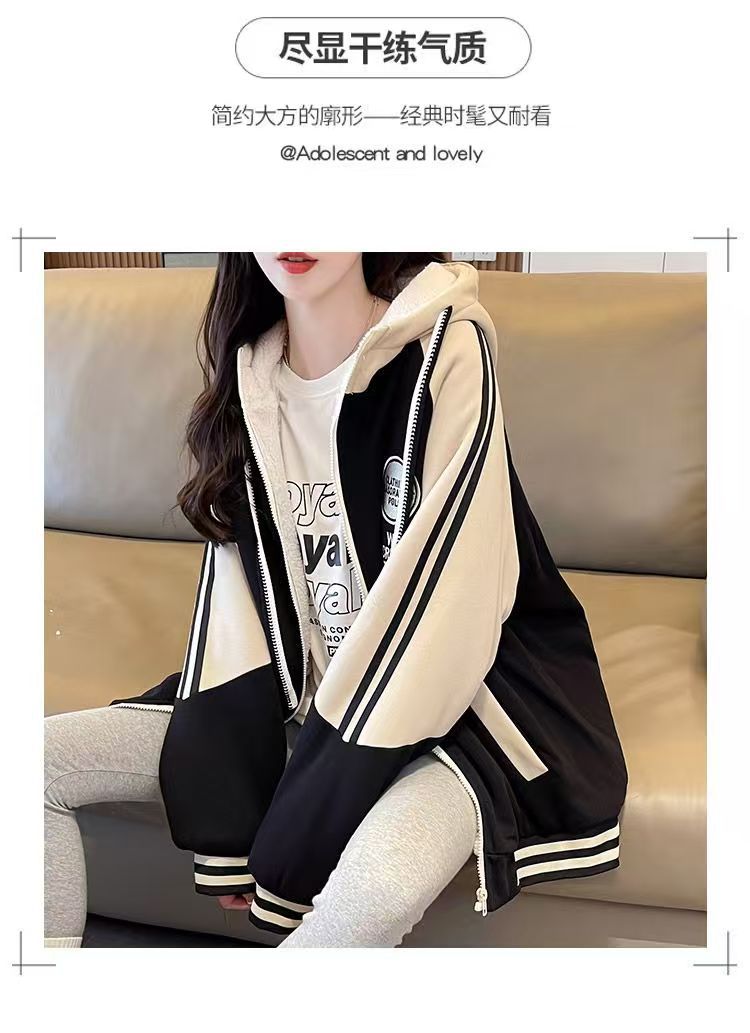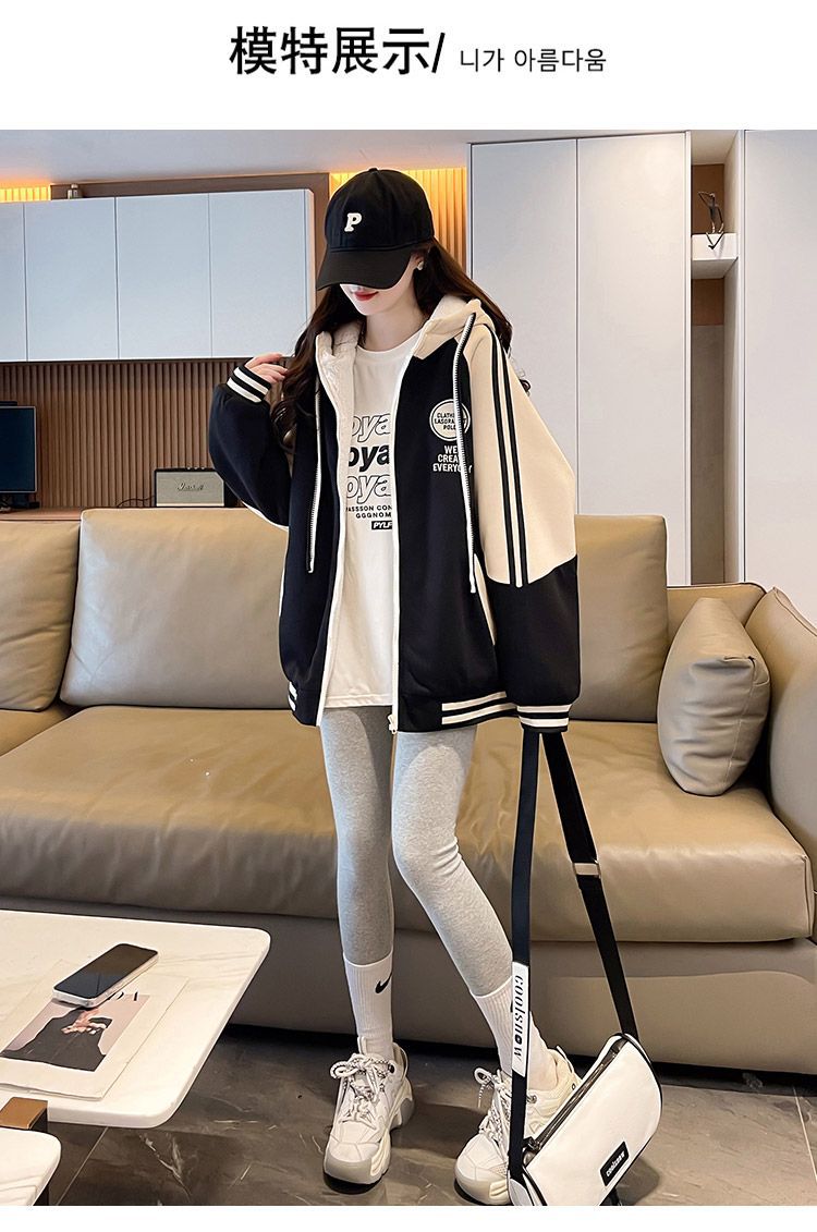 女童秋装连帽拼接外套2025新款中大童韩版洋气韩版拉链卫衣开衫潮