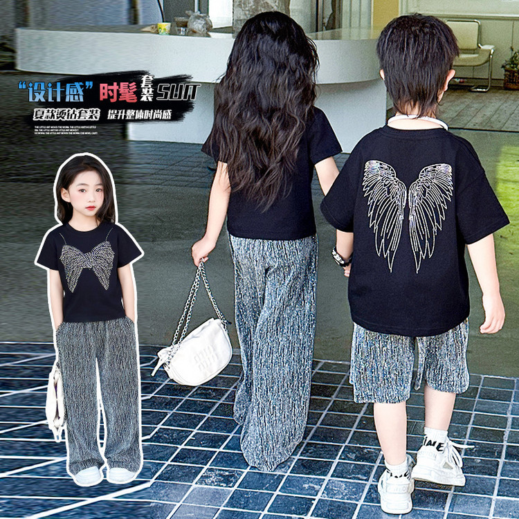 男の子サマースーツ半袖2025新しい子供用サマーベストベビー半袖ブライトダイヤモンド韓国版ハンサムストリート