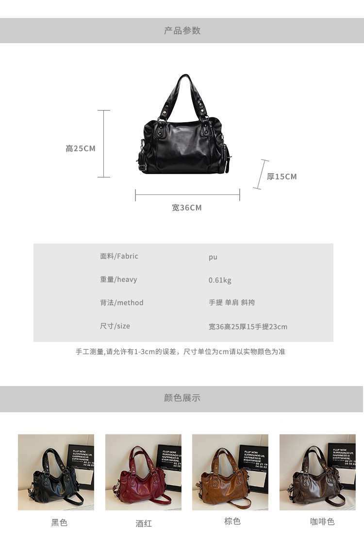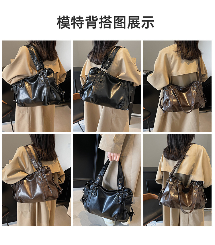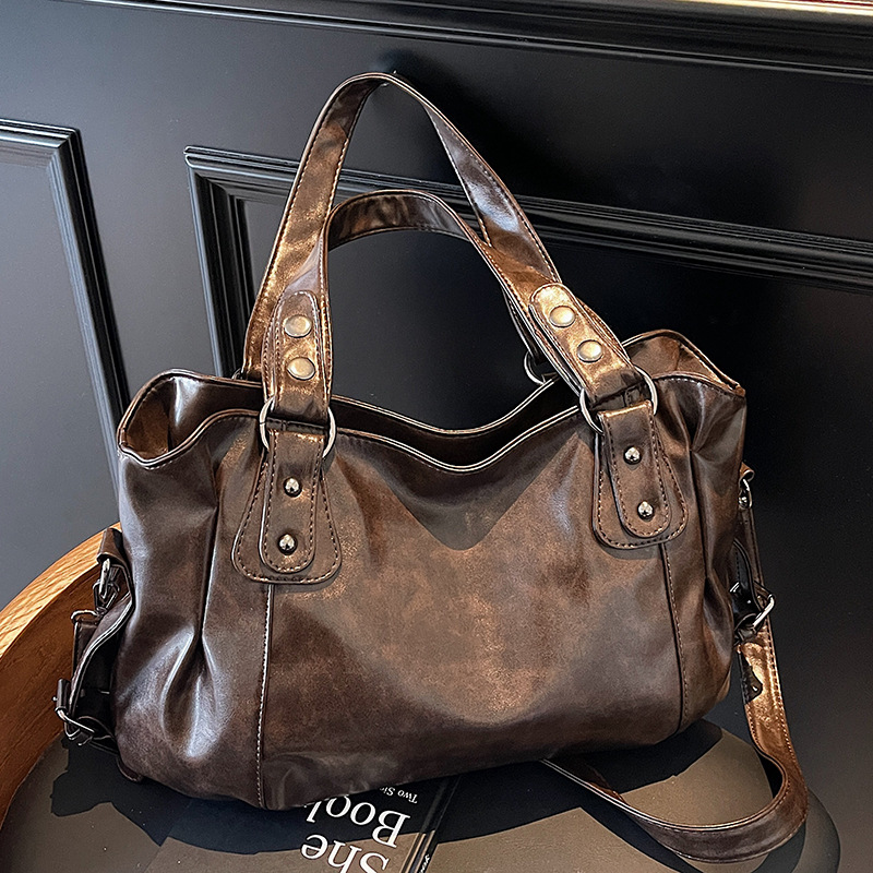 外贸复古包包女大容量2025新款休闲斜挎通勤包流行手提上课托特包