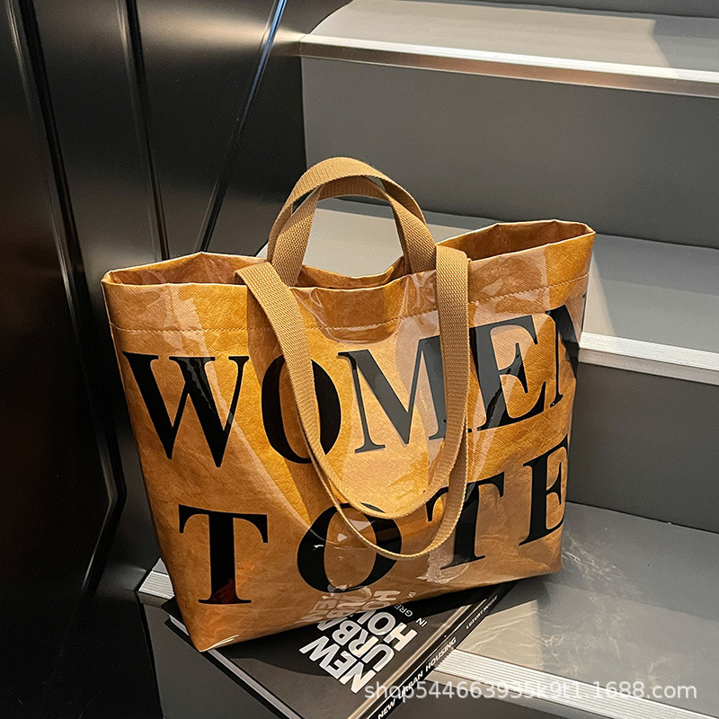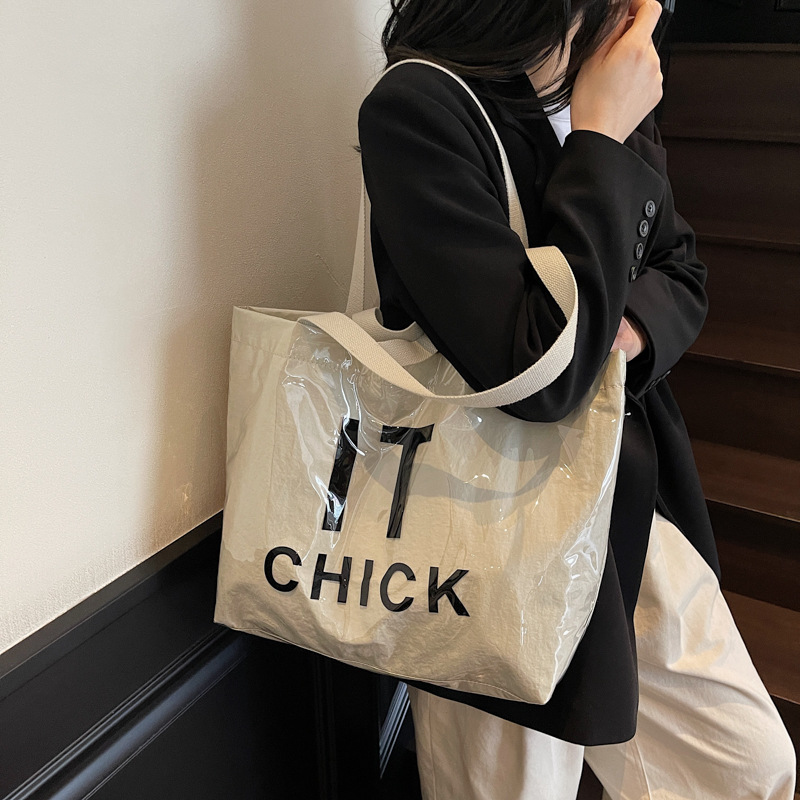 インス風 大容量 クラフト紙 透明 ゼリー トートバッグ レター 高級 大型 ハンドバッグ ショッピングバッグ Lサイズ