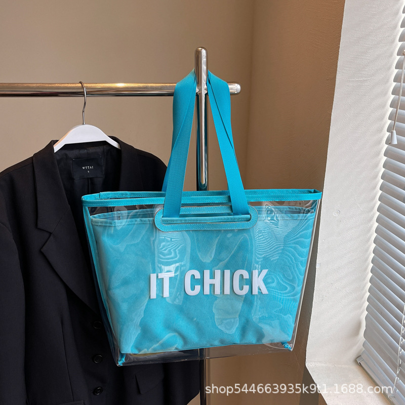 人気の大容量ファッショナブルな夏透明バッグ女性のための 2025 新しいトレンディな学生バッグ通勤ポータブルショルダーバッグ