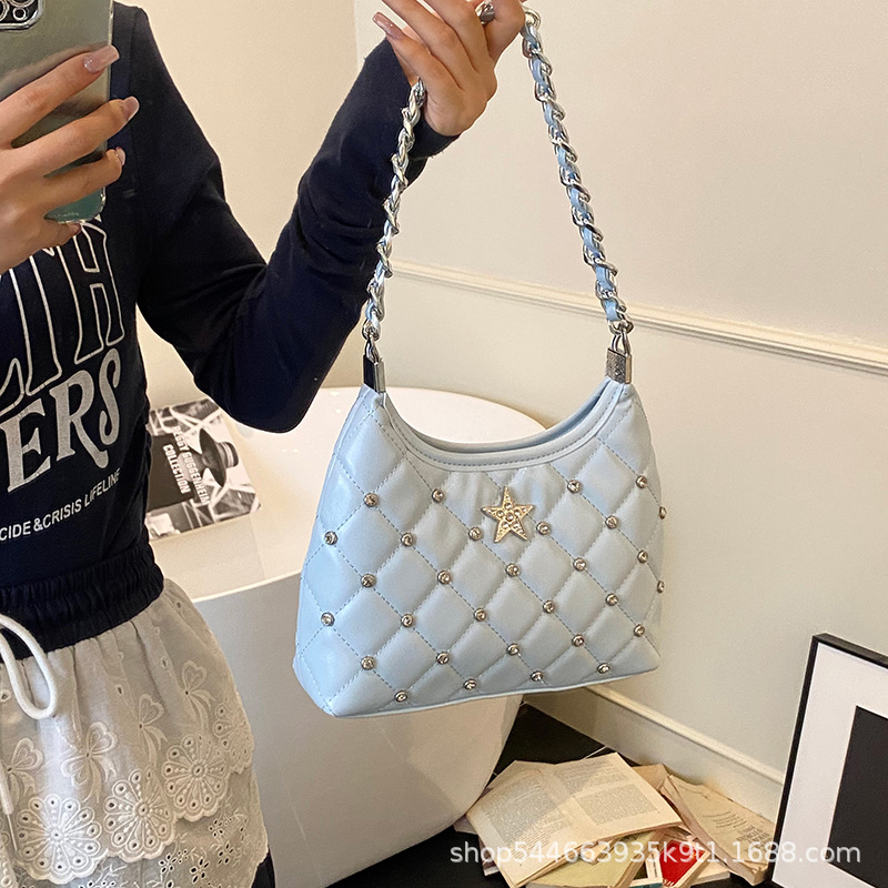 ファッショナブルな菱形チェーンスモールバッグレディースバッグ2025新しいハイエンドバケットバッグ西洋スタイルシングルショルダークロスボディスモールフレグランススタイル