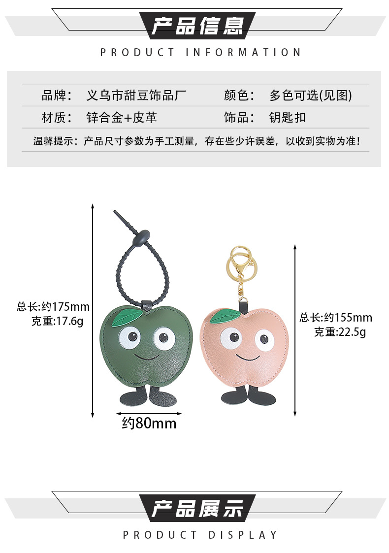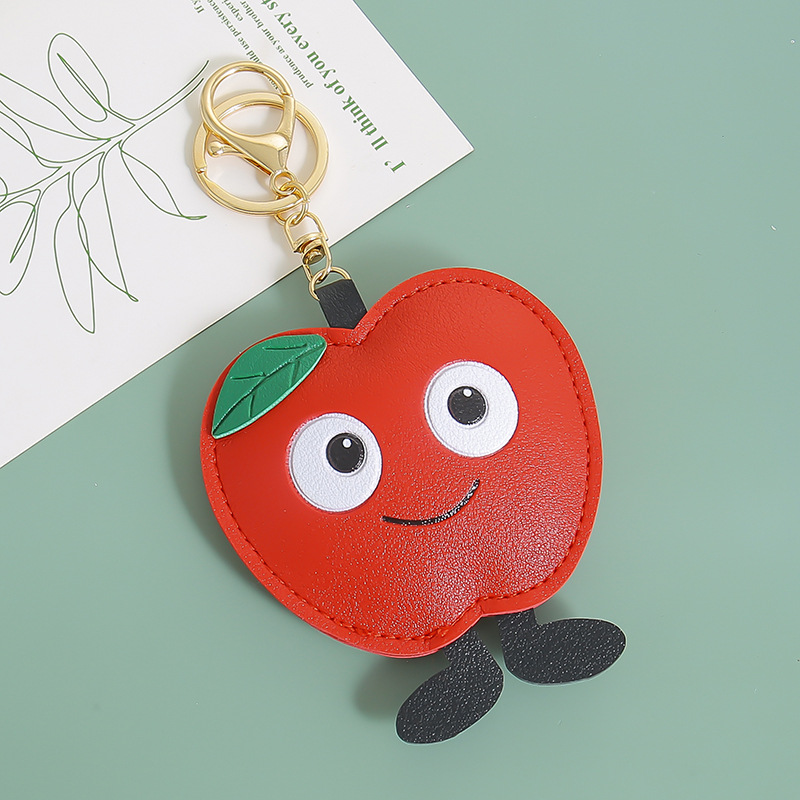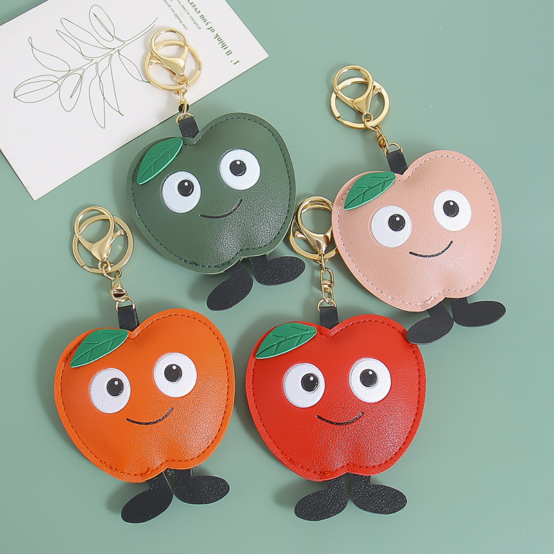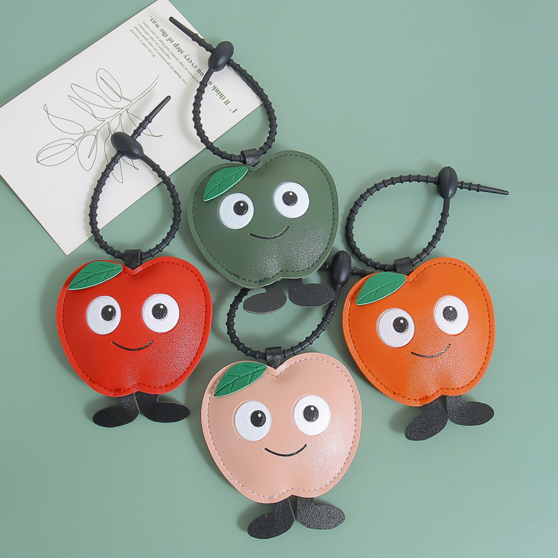 原创跨境皮革水果吊坠卡通芒果公仔钥匙扣女士水杯挂件PU皮料挂饰