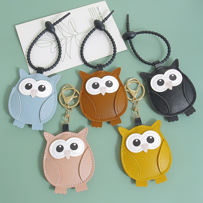 原创新款PU皮革猫头鹰挂件卡通皮料公仔钥匙扣时尚百搭包包装饰品