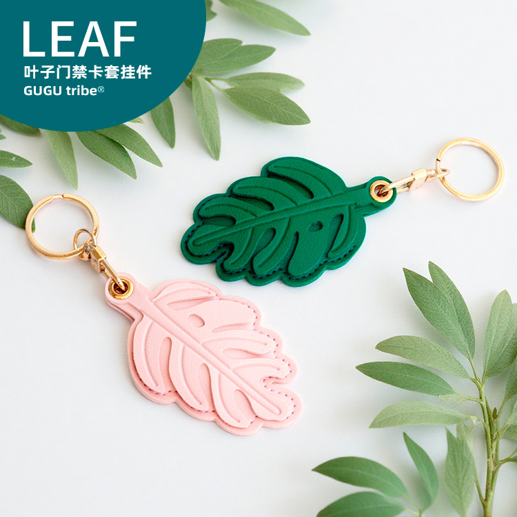 绿叶皮革钥匙扣门禁卡套创意小礼物可爱包包挂件airtag保护套