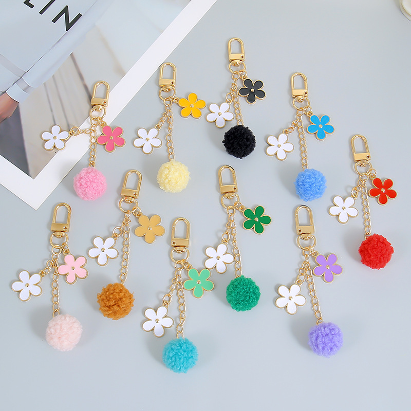 クロスボーダー新作 ファジーフラワーキーホルダー 日本風個性派合金製 オイル塗装 両面小花アクセサリー イヤホンケースデコレーション